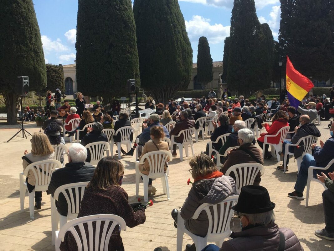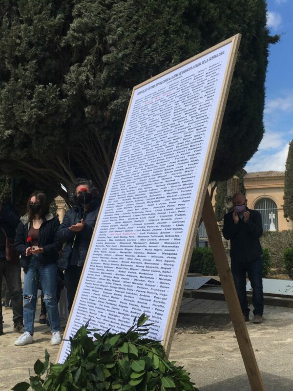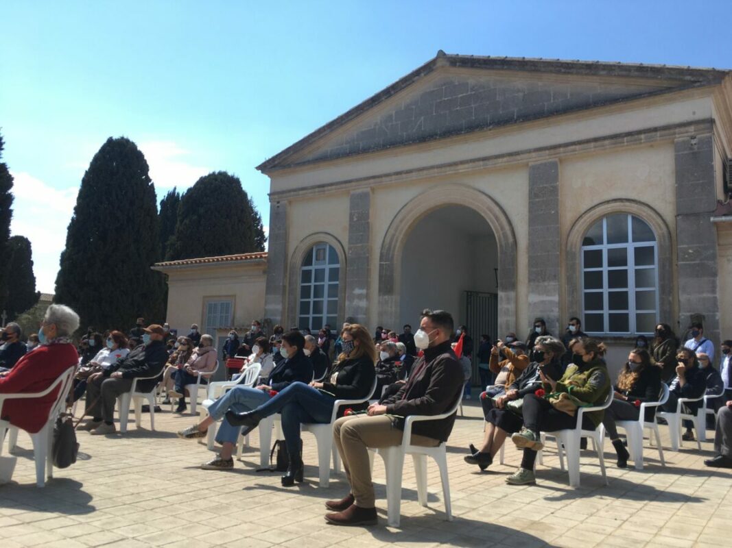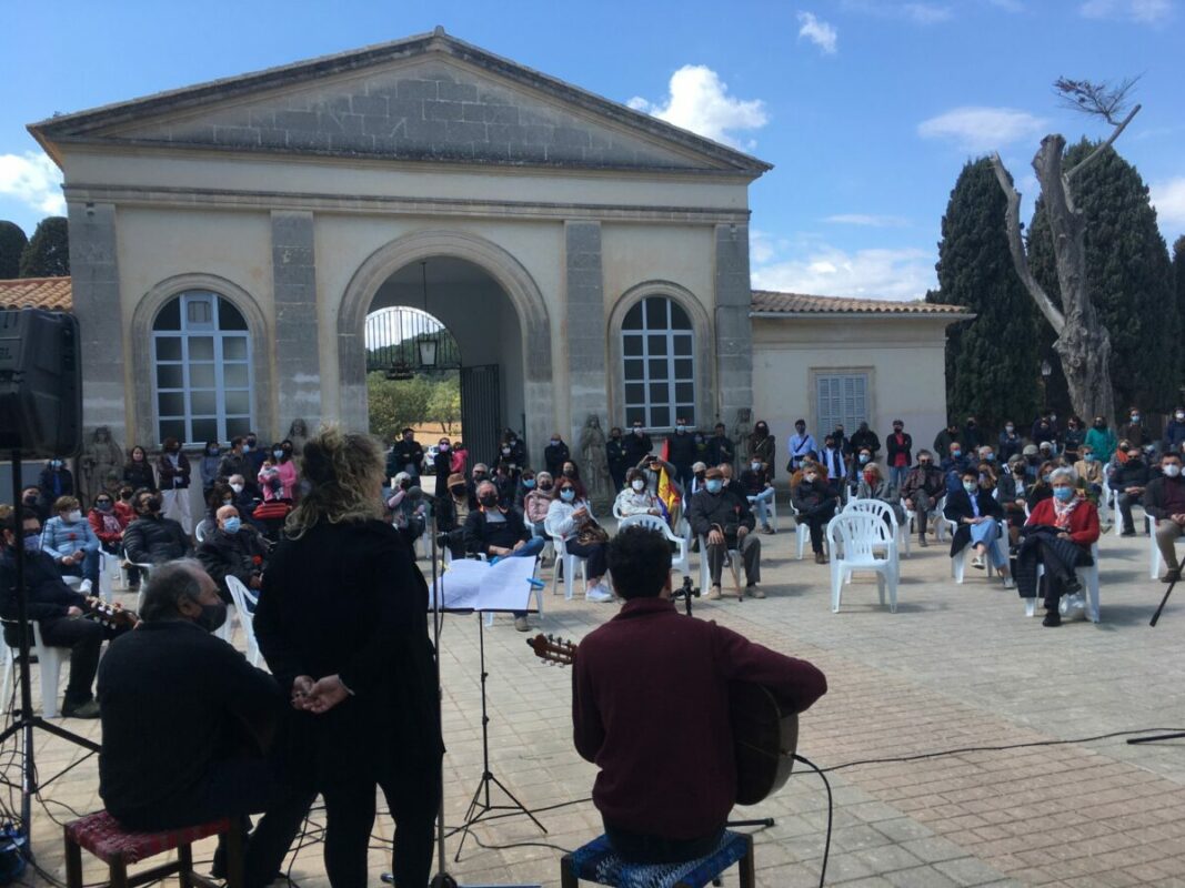 “És el primer acte que podem fer aquí després de l’obertura de les fosses”, deia en la presentació primera de l’acte de Son Coletes en memòria de les víctimes de la represssió feixista la conductora de l’acte i membre del Comitè de Son Coletes, Mar Bel. De fet, aquesta va ser una de les pedres angulars de l’acte de diumenge passat, que es tornava a dur a terme després de la interrupció forçada de l’any passat arran del confinament domiciliari en què ens trobàvem l’any passat per aquestes dates. L’acte tengué lloc a l’esplanada de l’entrada, amb un aforament màxim de 200 persones, que no se sobrepassà.
