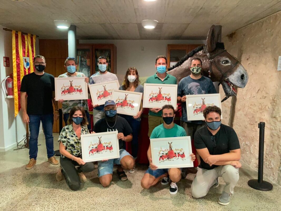 L’Escola de Mallorquí va obsequiar els mulassers de Manacor amb una aquarel·la obra del dibuixant Toni Galmés. Amb aquest present, la institució manacorina volia homenatjar i agrair la feina feta pels responsables de la sortida de la Mulassa, especialment enguany que, després d’un any sense sortir, encara romanien importants restriccions vinculades amb la pandèmia. En el discurs d’agraïment, el batle Miquel Oliver, que hi acudí acompanyat del delegat de l’Escola, Sebastià Llodrà, i en presència d’Antònia Llodrà, membre de la comissió permanent i de la directora Margalida Rosselló, afirmà: “Gràcies per haver fet plorar el meu fill”, de cinc anys i que no havia pogut veure mai encara a plena consciència la Mulassa.