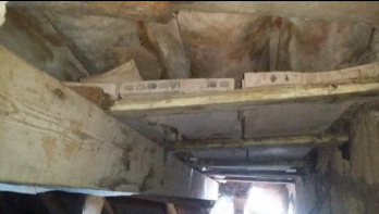 Lesió a una de les bigues de la coberta de la nau principal, encara en peu