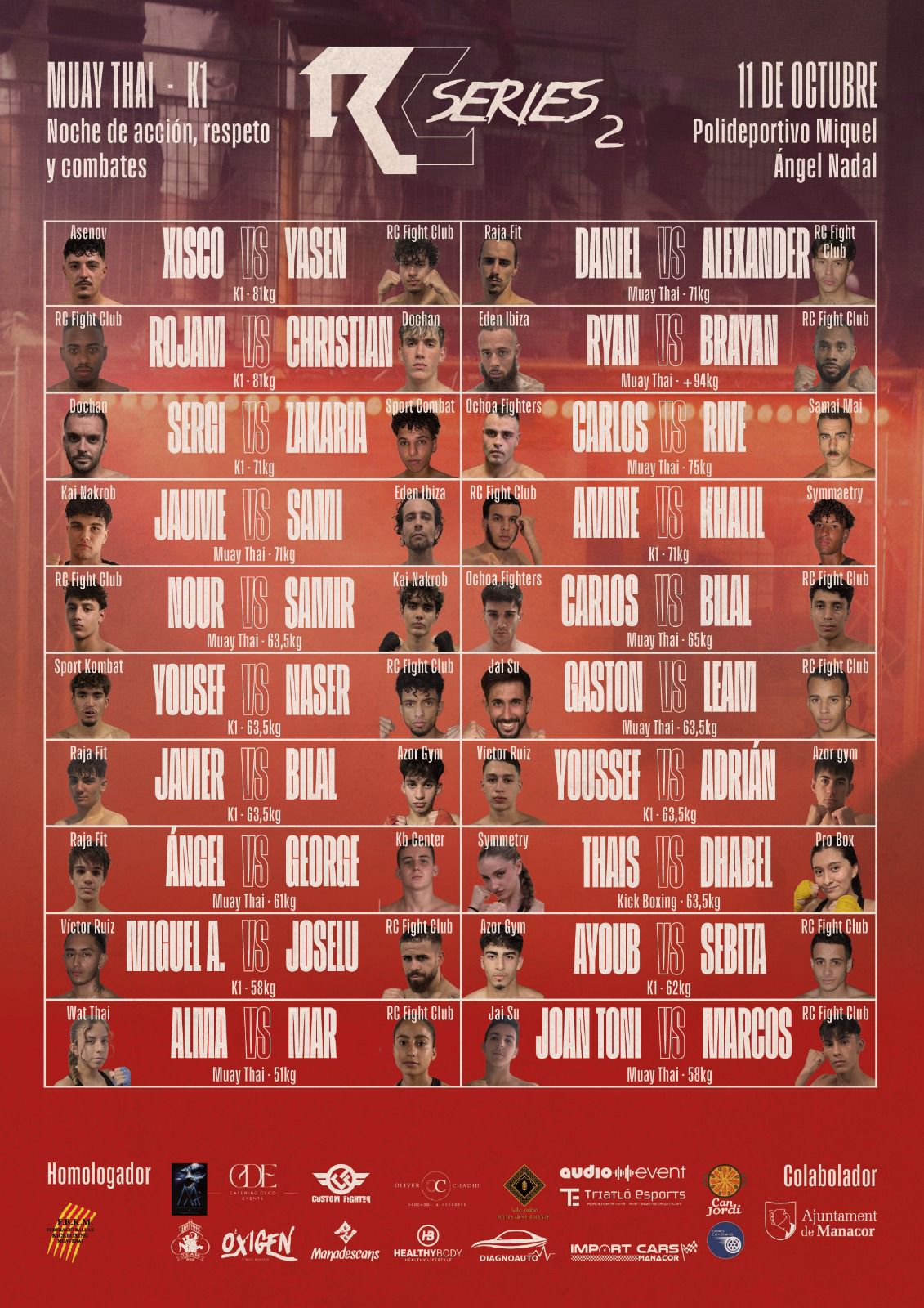 Aquest dissabte el poliesportiu Miquel Àngel Nadal acollirà l’RC Series, una vetllada de combats de diferents disciplines com el Muay Thai, el Kick Boxing o el K1 que vol donar espai a les joves promeses d’aquests esports de combat de les Illes Balears i que compta amb l’homologació de la Federació Balear de Kick Boxing y Muay Thai.