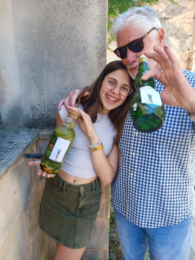 Dins les botelles, i sempre en nombre imparell, “si no voleu que us peguin els set mals”, primer, a la part de baix, i perquè no surtin pel coll quan abocam, els grans de cafè, les flors de magrana, les de camamil·la, o les clovelles de llimona o de taronja. Després, la resta d’herbes, mata, ullastre, romeguer, llorer, tarongí, menta, donzell… fins arribar a les tres mestres imprencindibles: l’herba-lluïsa, el fonoll i l’herba-sana. Una vegada tancat el circuit, els herbaires omplien les botelles amb la proporció desitjada d’anís dolç i cassalla. Ara un meset de maceració i un poc passat Sant Joan els mes frisosos ja en podran beure. Els més pacients, podran esperar per Sant Antoni.