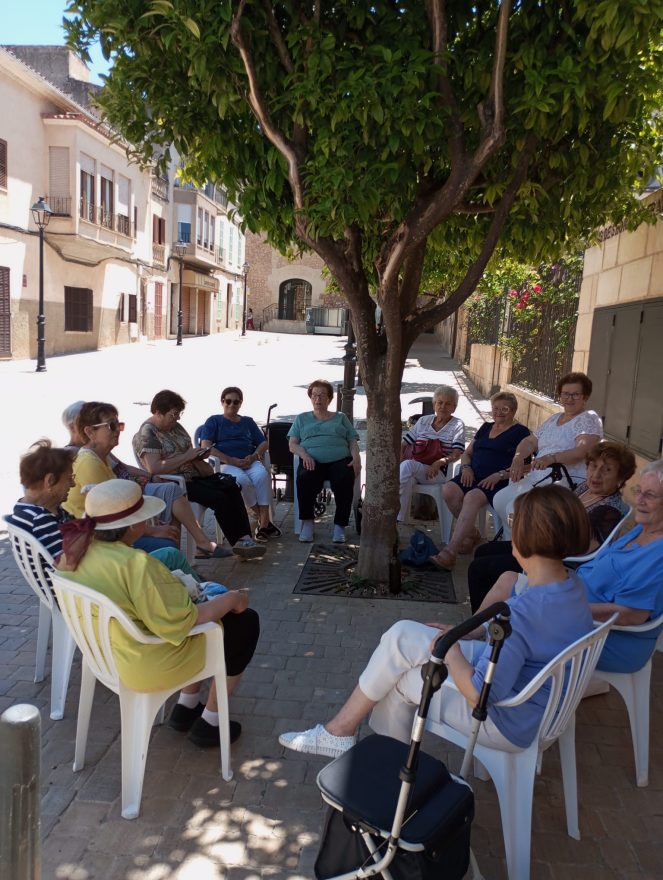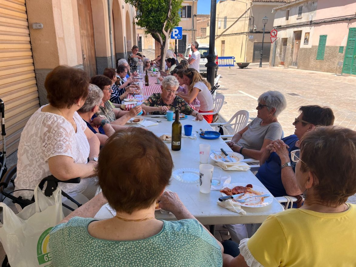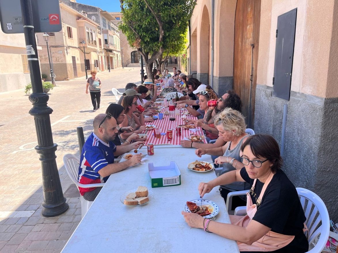 Després ha vengut l’hora del dinar. Amb un sol ardent i un dia clar i net, una cinquantena de persones s’han posat peus davall taula per donar gust al paladar amb les gildes i el tumbet, amb el xef Guillem Roman comandant un equip de cuina entregat a la tasca d’aveciar papil·les gustatives i format entre d’altres per Henedina Perelló, Margalida Munar, Guillem Pou, Llorenç Perlo o Miquela Pasqual. Més gustós, impossible.
