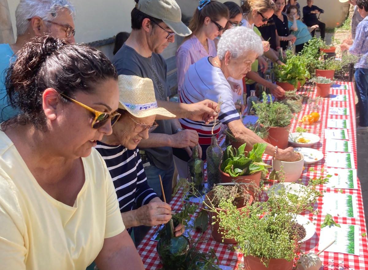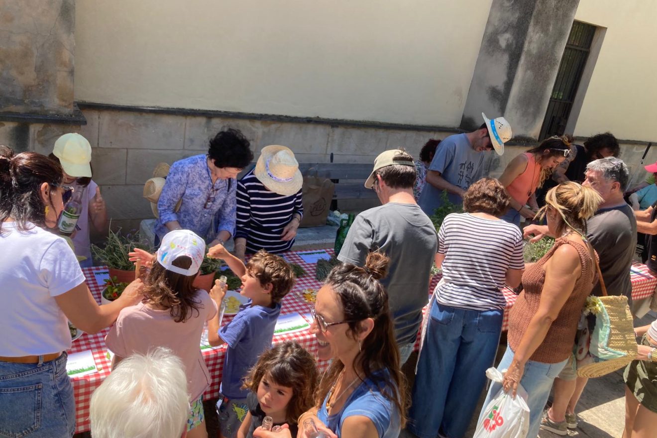 Les forces vives de l’associació ja eren a la plaça en bon dematí per preparar el dinar. Passades les deu, arribaven els mestres herbers, carregats de bones olors per preparar el circuit per on passarien els elaboradors a partir de migdia. Més d’una trentena d’herbes i fruits omplien les tres taules amb els seus cartells corresponents. Tocades les dotze, una vintena llarga de persones s’han acostat a la taula.