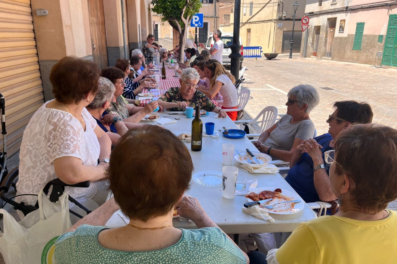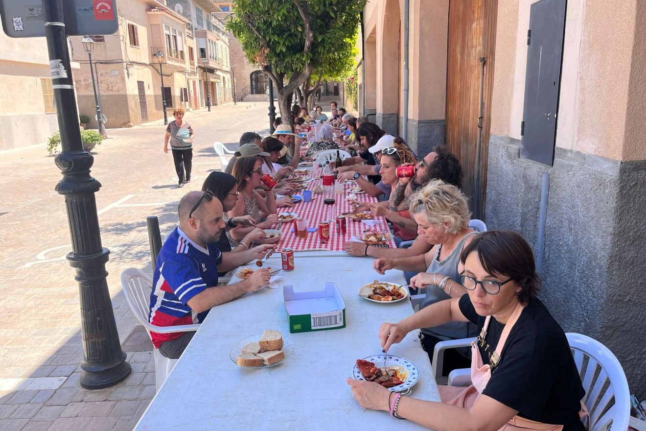 Després ha vengut l’hora del dinar. Amb un sol ardent i un dia clar i net, una cinquantena de persones s’han posat peus davall taula per donar gust al paladar amb les gildes i el tumbet, amb el xef Guillem Roman comandant un equip de cuina entregat a la tasca d’aveciar papil·les gustatives i format entre d’altres per Henedina Perelló, Margalida Munar, Guillem Pou, Llorenç Perlo o Miquela Pasqual. Més gustós, impossible.
