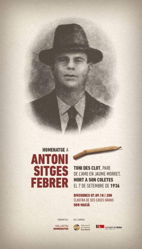 “Antoni Sitges Febrer, fill de Bartomeu I isabel, tenia 46 anys i vivia a Son Macià, on treballava al camp; era Morret, de malnom. Estava casat amb Teresa Antich Bisquerra i tenia tres fills: Bartomeu, Jaume i Isabel. Era delegat de l’Ajuntament republicà a Son Macià. El 28 d’agost el tragueren de casa seva i el tancaren. Moria el 7 de setembre de 1936 a Son Coletes. L’acta no diu el motiu”. Aquesta és la nota amb que Antoni Tugores referencia l’assassinat d’Antoni Sitges en el seu llibre Manacor. La guerra a casa. Tots els indicis avui semblen indicar que les restes d’Antoni Sitges haurien estat localitzades i identificades a Son Coletes gràcies a les mostres d’ADN facilitades pels seus familiars, que n’han cercat el cos durant noranta anys.