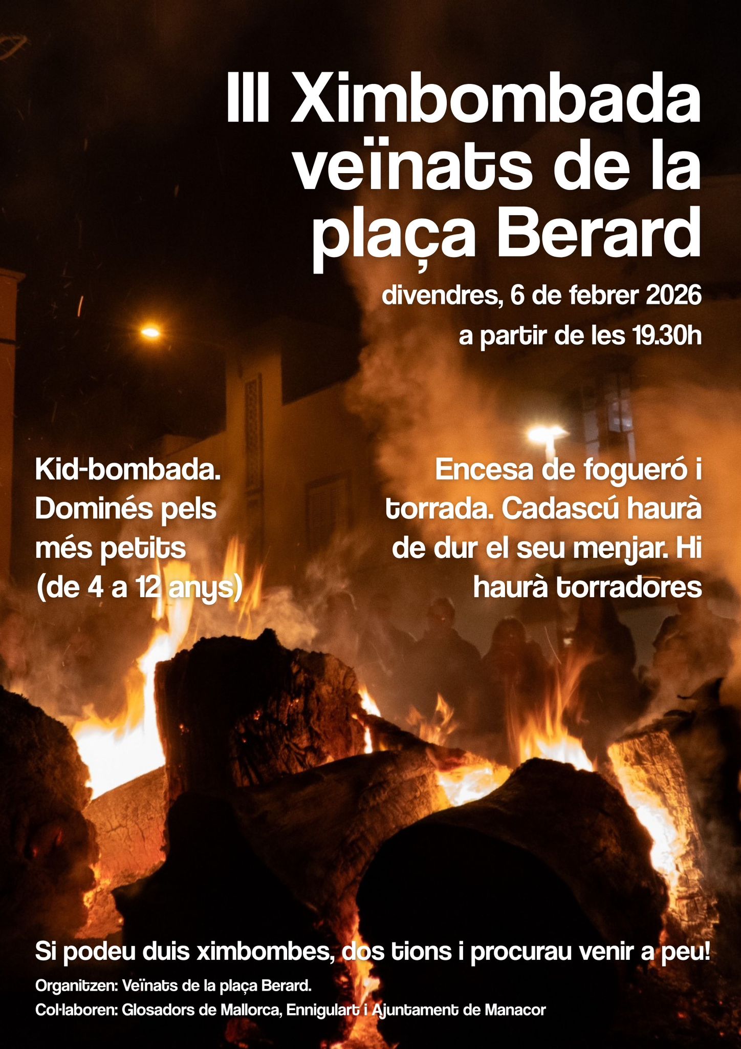 L’acte compta amb la col·laboració d’Ennigulart, de Glosadors de Mallorca i de l’Ajuntament de Manacor. Estau-hi atents, perquè, a més, el fogueró tendrà figura, i és una sorpresa agradable per a la barriada.