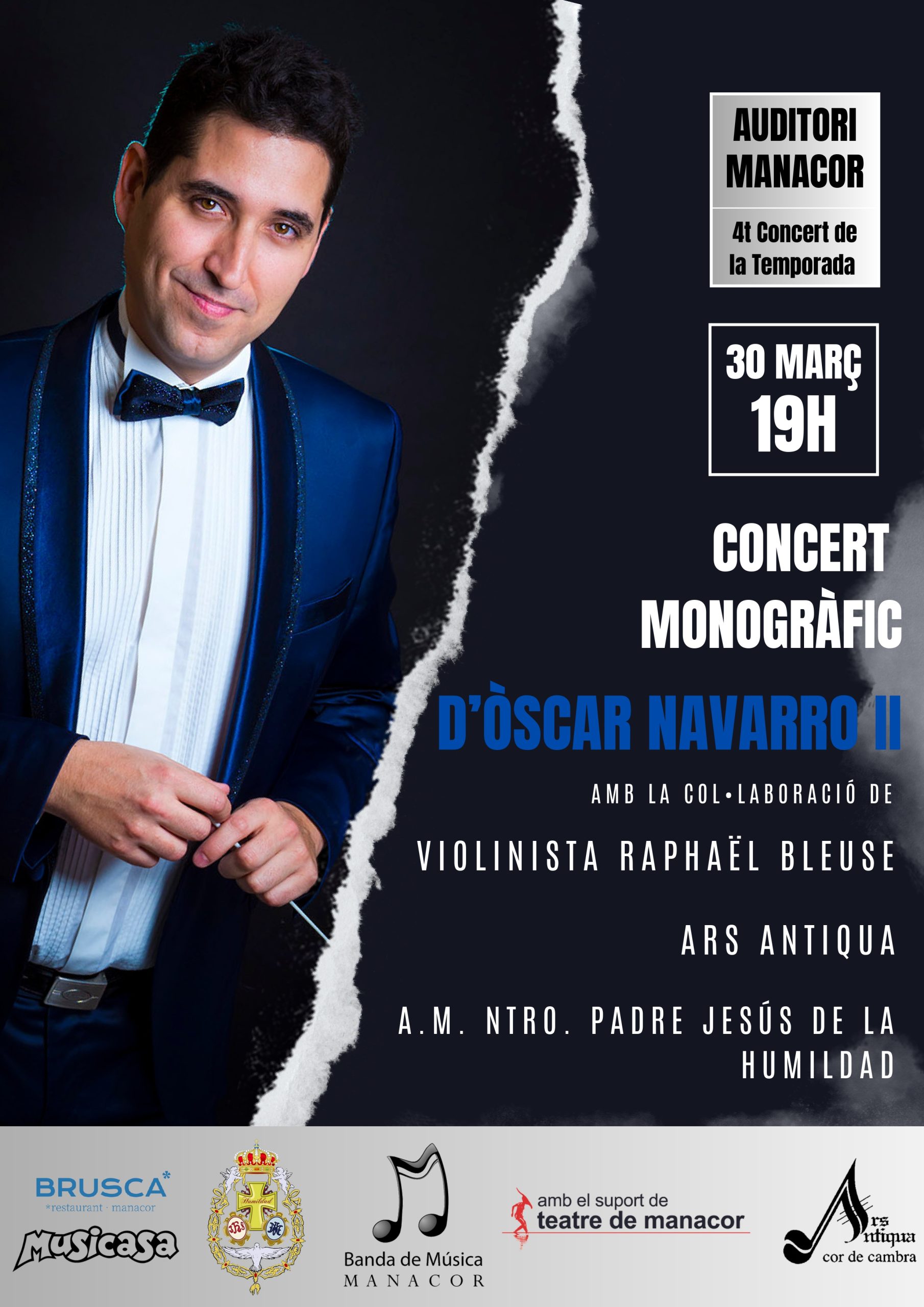 Dia 30 de març l’Auditori de Manacor acollirà un nou concert de la Banda de Música de Manacor, a partir de les 19 h. Serà aquest el quart concert de la temporada de banda i serà sota la direcció d’Òscar Navarro, considerat un dels millors compositors actuals.