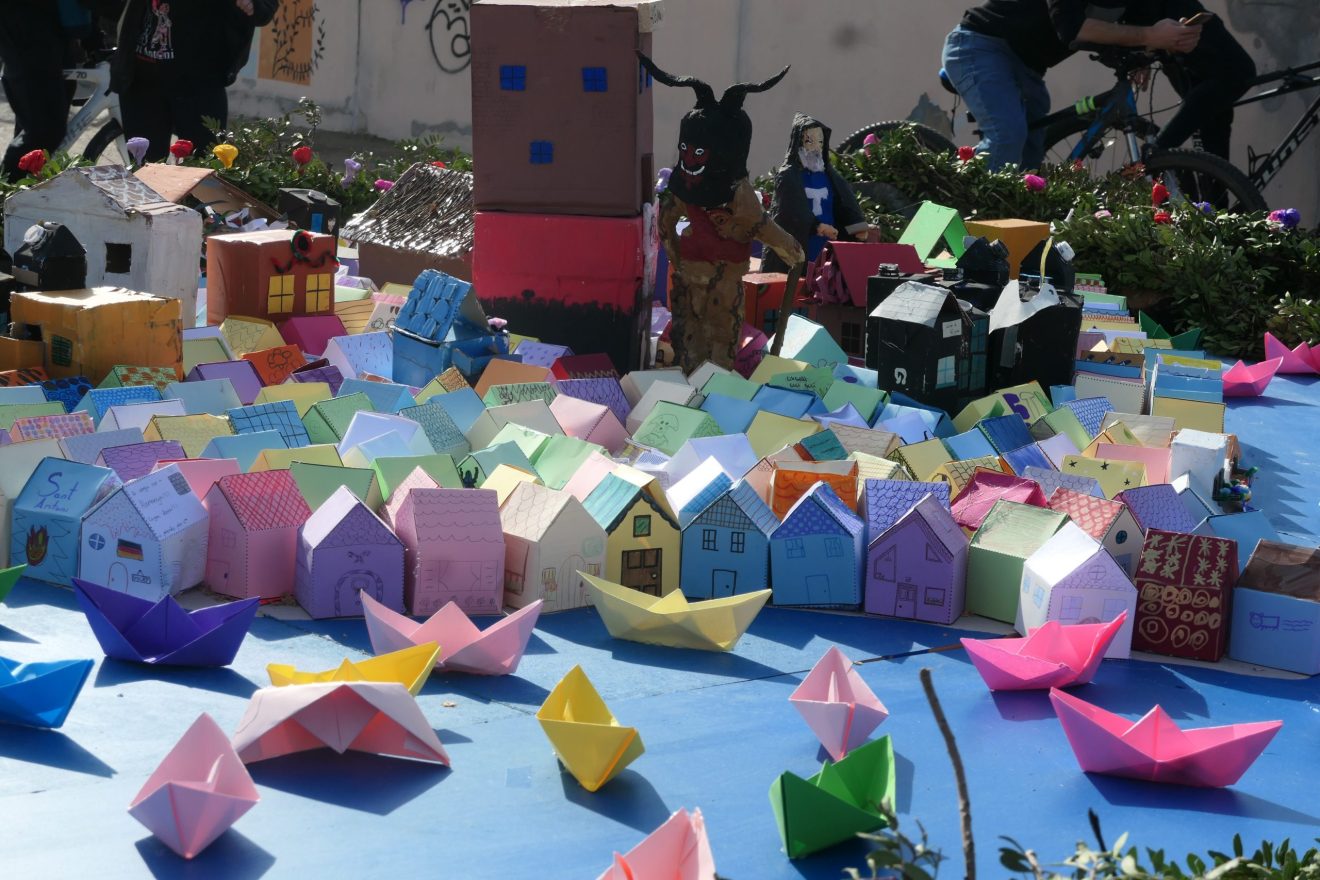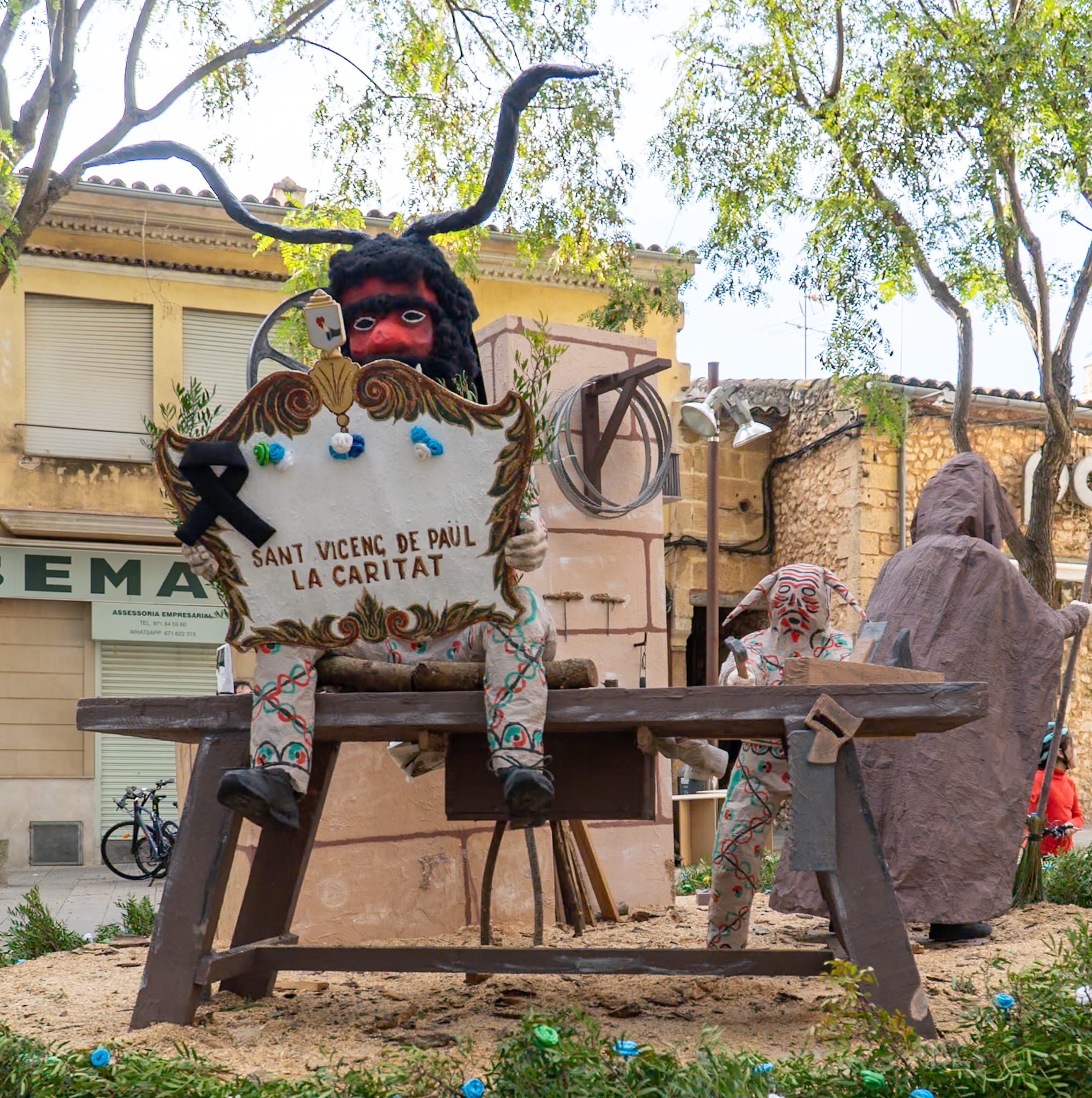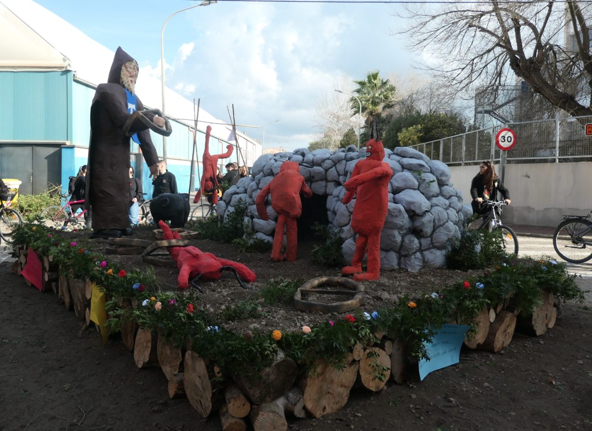 Manco reivindicatiu fou el fogueró que obtingué la tercera posició. L’AFA de l’escola Sant Vicenç de Paül optava per uns dimonis fent feina de fusters
