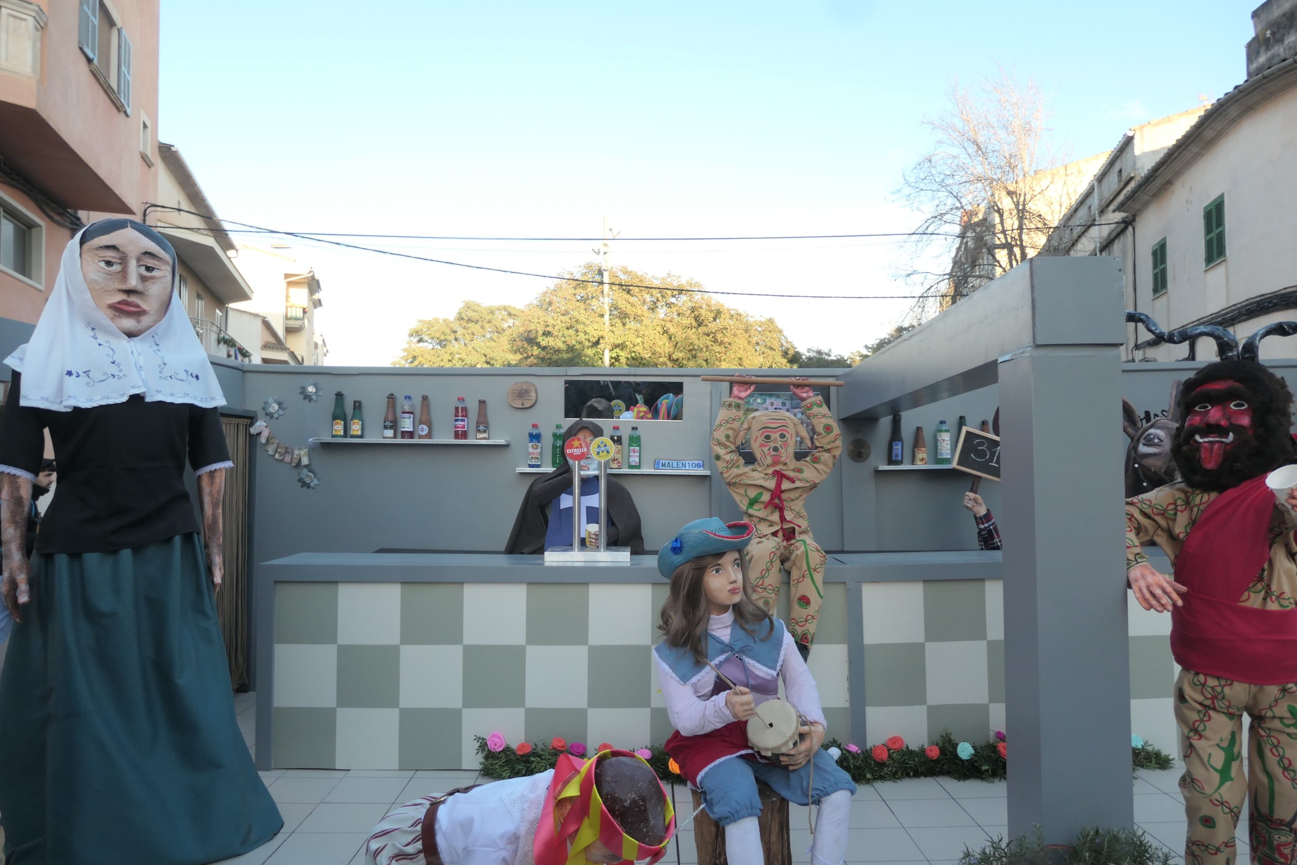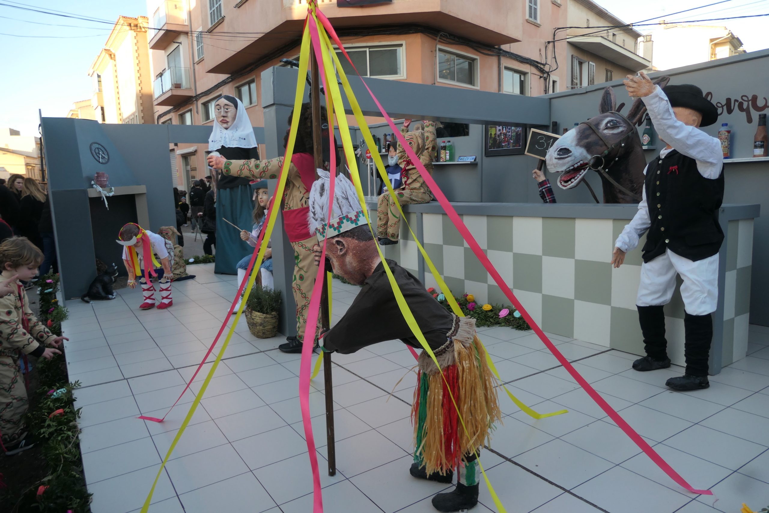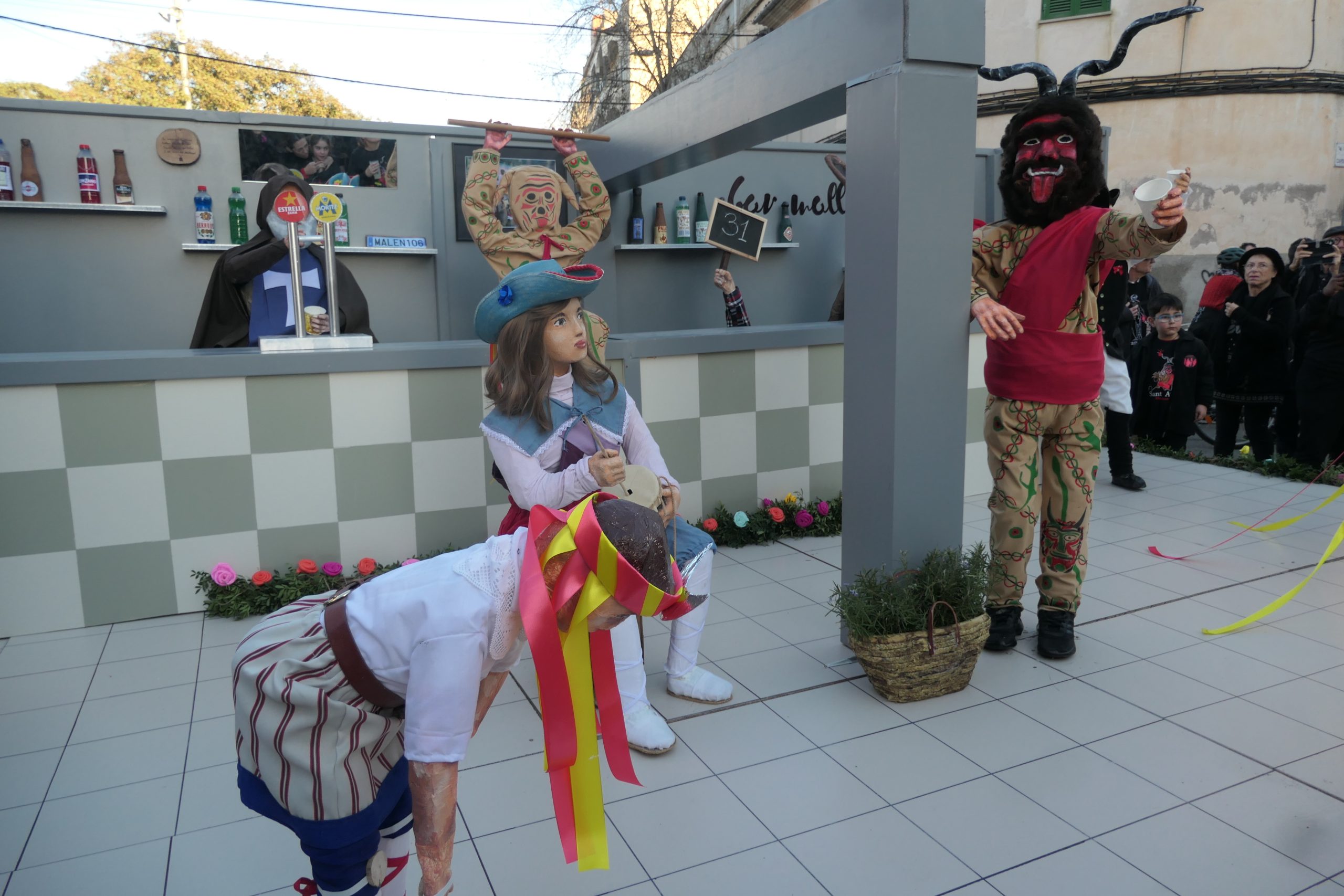 En cinquena posició, els Amics del Mallorquí proposaven també la recreació de l’interior del Bar Mallorquí, amb indis, moretons i cossiers: