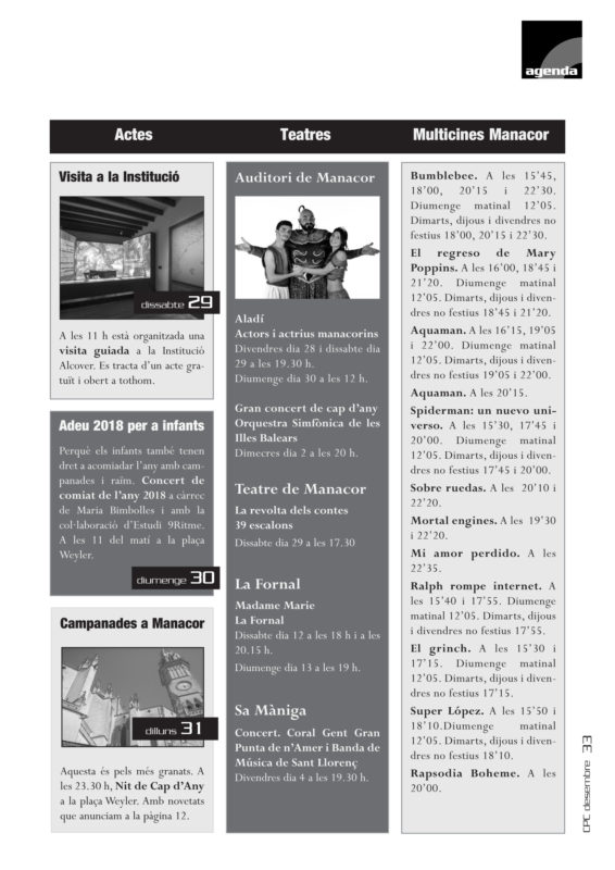 La cartellera i més coses per aquests dies…