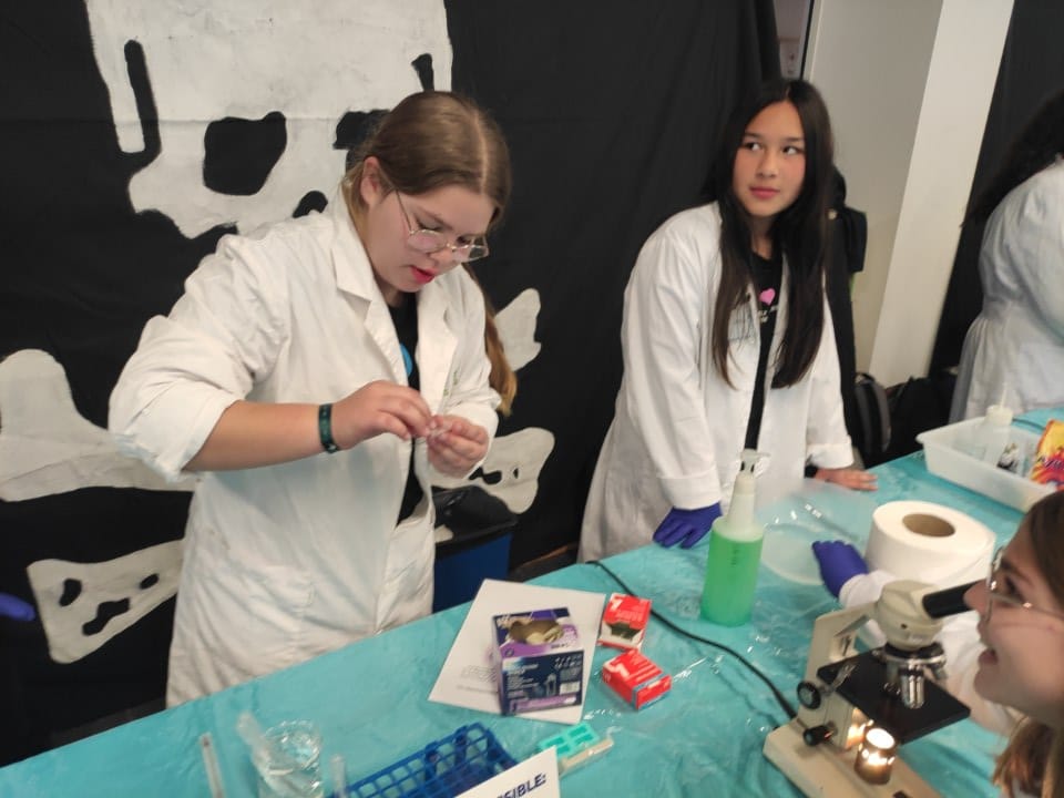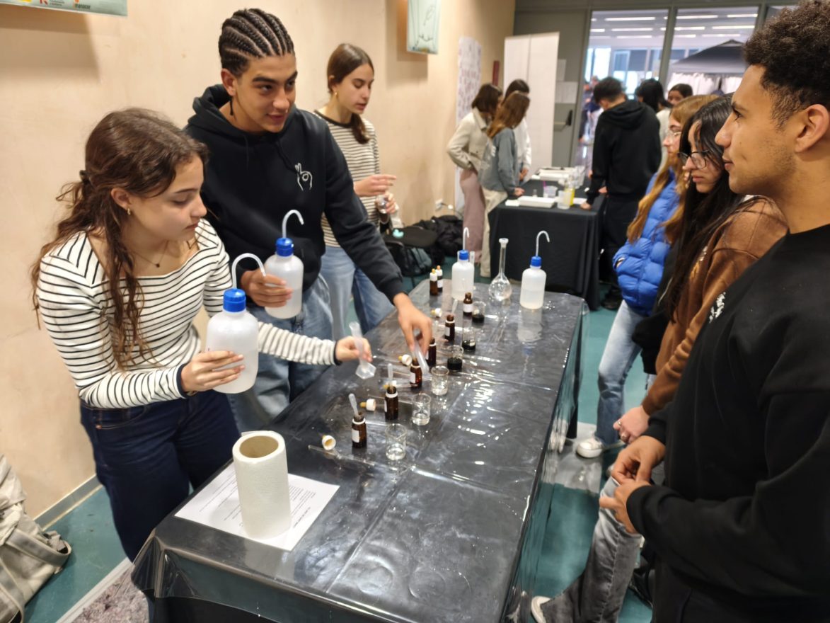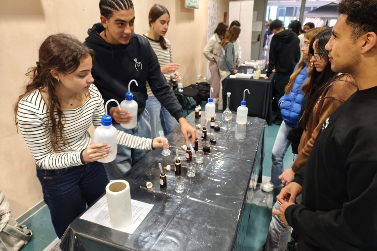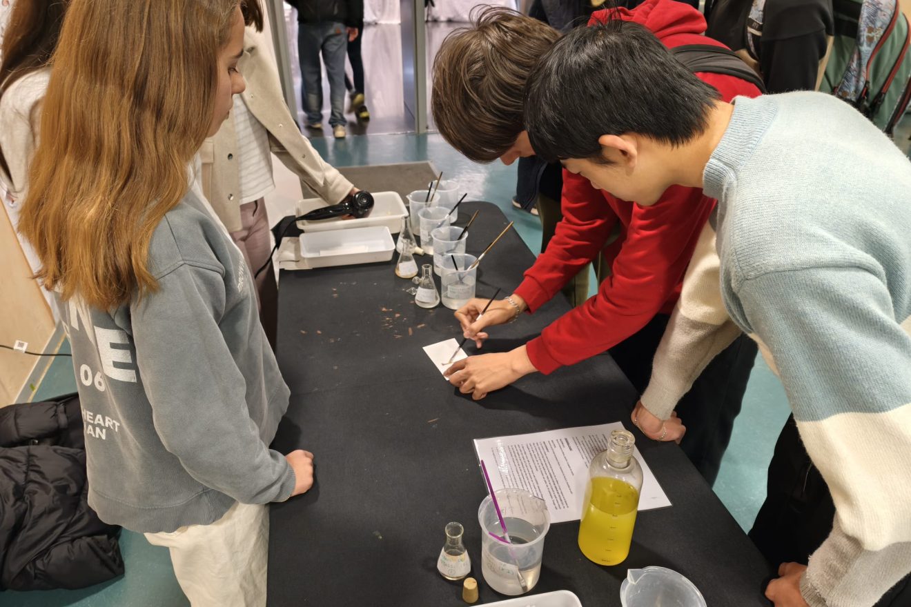 Des del departament de biologia i geologia, el tema que s’ha tractat ha inclòs les funcions de nutrició, relació i reproducció. En primer lloc, l’alumnat ens ha convidat a explorar com ens connectem amb l’entorn i com es transmet la informació genètica amb els següents experiments: exploració del sentit de l’oïda, el fascinant procés d’extracció d’ADN, experiències sensorials amb el gust, l’estudi de la reproducció de llevats, el descobriment del punt cec de l’ull, l’observació d’espermatozoides al microscopi, proves de tacte i observació de pol·len. Per altra banda, s’han duit a terme un conjunt de pràctiques centrades en la biologia aplicada i la salut, tals com l’estudi del metabolisme energètic mitjançant la competició de llevats, la respiració cel·lular i l’anàlisi de la mineralització òssia. I l’aplicació de tots aquests conceptes a la nostra vida quotidiana: la incidència de vapejar en la salut pulmonar i un test de vitamina C. Finalment, s’ha disposat d’una sèrie de rèptils aportats per la família d’un alumne del nostre centre.