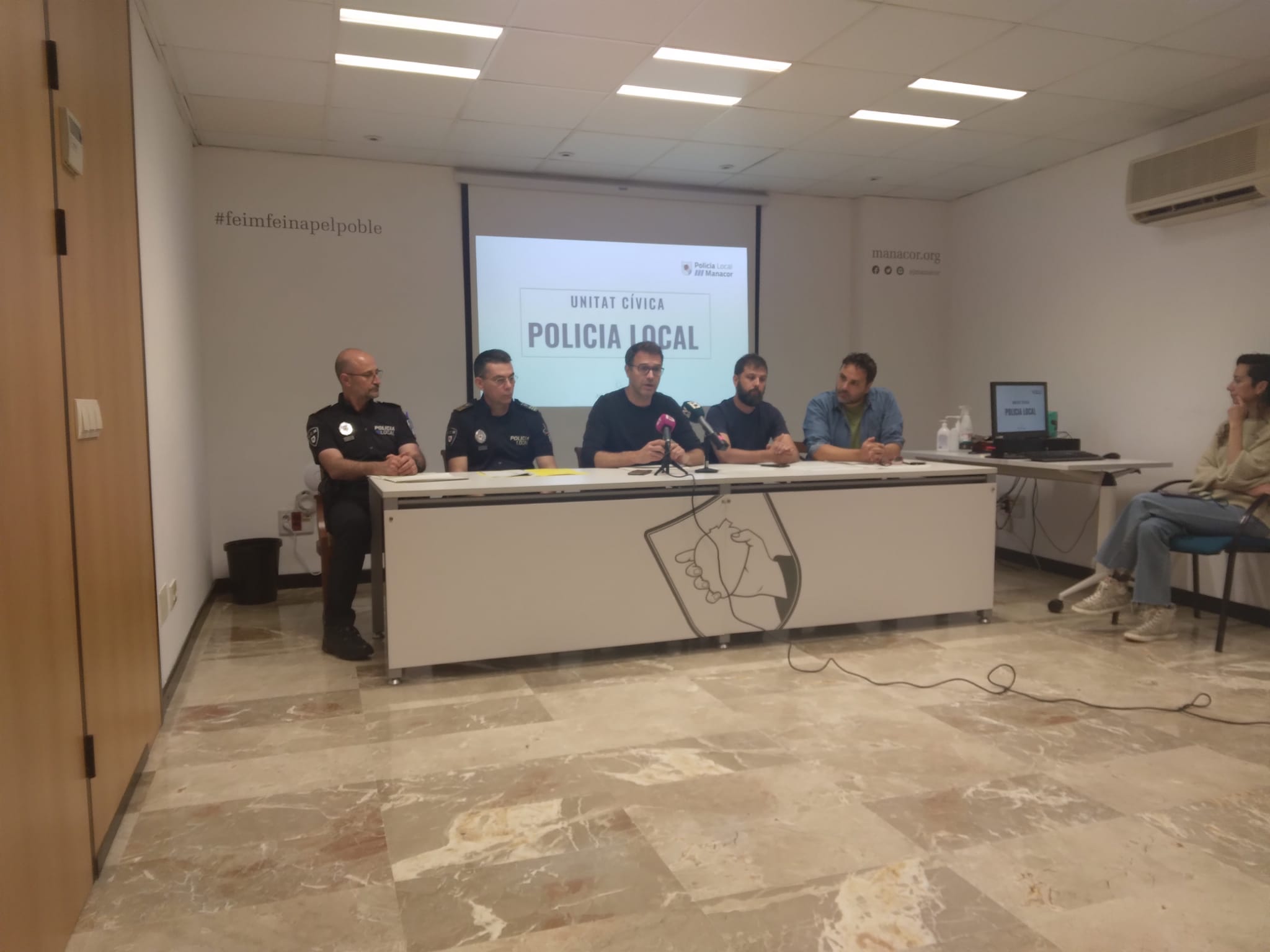 Amb la intenció de posar fre a aquesta situació, que malmet la imatge del municipi, l’Ajuntament de Manacor i la Policia Local crearen la Unitat Cívica de la Policia Local, que han presentat aquest dimarts en roda de premsa el batle de Manacor, Miquel Oliver; el delegat de Policia Local, Mateu Marcé; el delegat de Medi Ambient, Sebastià Llodrà; i l’inspector en cap de la Policia Local, Manel Prieto. Es tracta d’una unitat que té l’objectiu de vetllar pel compliment de les ordenances municipals, que estableixen unes normes que regulen la convivència al poble.