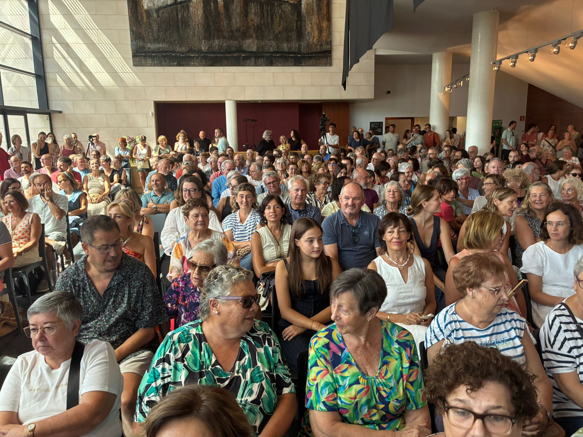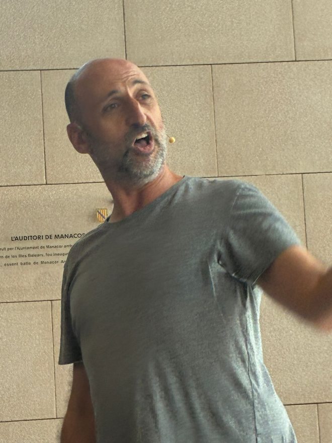 “Vivim un temps on arreu la cultura i la llengua són qüestionades i atacades. A Manacor la cultura no és un luxe, és una necessitat, un dret i una prioritat”, ha dit Oliver després tancar les salutacions i entrar en el bessó polític del seu discurs. Qualcú entre el públic ha intentat tímidament interrompre el discurs amb unes mamballetes, que, estranyament, no han estat secundades. Però Oliver no s’ha desmandat: “El teatre aporta emoció, pensament crític i vida compartida. Som éssers que necessitam imaginar, crear i transformar”. Finalment, ha insistit el batle manacorí davant l’atenta mirada de Lluc Salellas, batle de Girona, que l’escoltava de primera fila, al costat de la cadira buida que havia deixat Oliver, “la cultura no s’atura ni ara ni mai. El teatre continuarà sent una de les nostres eines per créixer com a persones i com a comunitat i en defensa de la nostra cultura i la nostra llengua. Al teatre hi venim a emocionar-nos, a reflexionar, i a valorar la cultura, perquè si no ho valoram, qualcú ho pot posar en dubte i això no ho volem de cap manera”. A l’altre costat del passadís, també a primera fila, molt atenta, la lider socialista Núria Hinojosa tenia assegut, just darrere, l’exbatle Antoni Pastor, abillat amb l’elegància que el caracteritza.