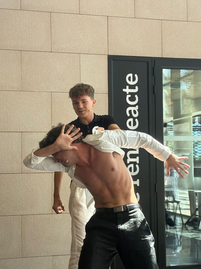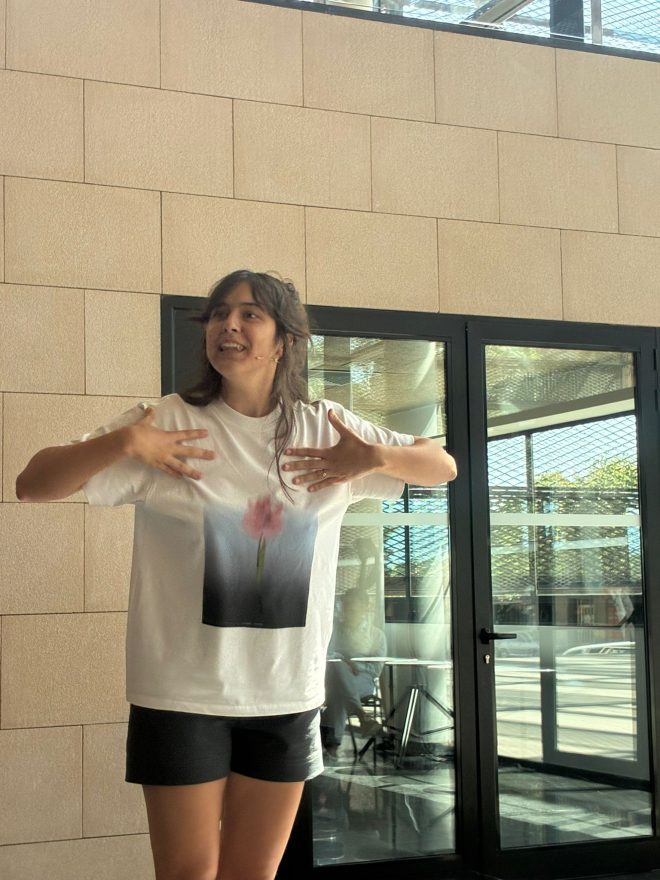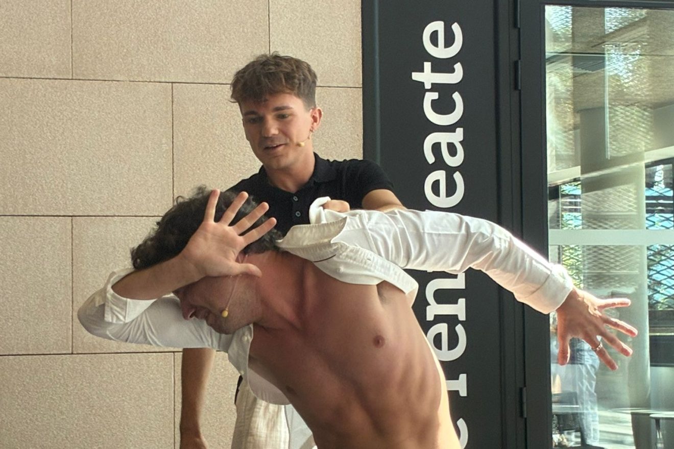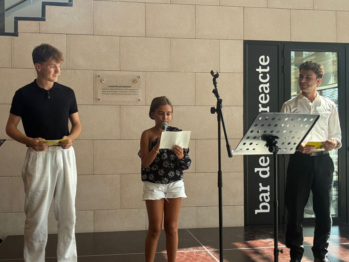 Els mestres de cerimònies, distesos i amb els ulls lluents, camisa blanca un, jersei negre l’altre, han acomiadat l’acte i per acabar han exclamat alhora “Salut…”, però una veueta infantil els ha interromputs. “Un moment, que jo també vull dir una cosa”. Una joveneta molt joveneta, una nina, s’ha aixecat d’entre el públic. “Però no tens micro”, li han dit. “No passa res, ja l’agafaré”. Berta Costa ha caminat decidida cap a l’escenari i ha llegit un text de convidada a la Mostra de Teatre Escolar. “Per cert”, ha acabat dient, “jo vaig començar a actuar a la Mostra l’any 2021”.