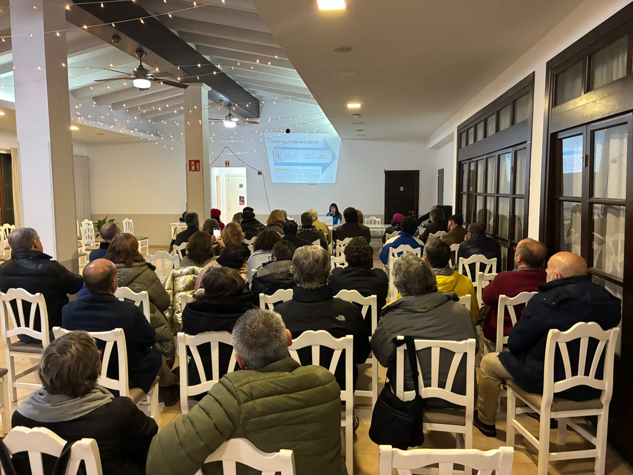 Però cert és que qualque cosa hi havia moguda, a la foto d’ahir. El target de jubilats, protojubilats i de persones sensibles amb la llengua i la cultura i les qüestions socials que solen acudir a les conferències que es fan a Manacor estava ahir una mica esbiaixat. La dreta manacorina hi era representada en totes les seves faccions. A primera fila, Jaume Rigo, que va ser número dos del Partit Popular a les darreres eleccions. Més discret, a les darreres files, Jaume Mascaró, número tres a les llistes de Vox als darrers comicis. Hi era, notablement, Jaume Darder, històric exregidor d’UM primer i del PP després a l’Ajuntament de Manacor. L’organitzador de l’acte, Gaspar Forteza, optà també per un paper secundari, a un costat, i per les files últimes del local. Bartomeu Frau, que va ser candidat d’Esquerra Republicana a la batlia de Manacor dues vegades, i que després milità a Unió Mallorquina, partit pel qual exercí diversos càrrecs públics, també seia entre els assistents. A darrera hora, un poc tardà, el també excandidat a la batlia i ara màxim impulsor de Som Mallorca i la Coalició Per Mallorca, hi compareixia l’hoteler Joan Lladó, que també ha estat soci de l’organitzador Forteza.