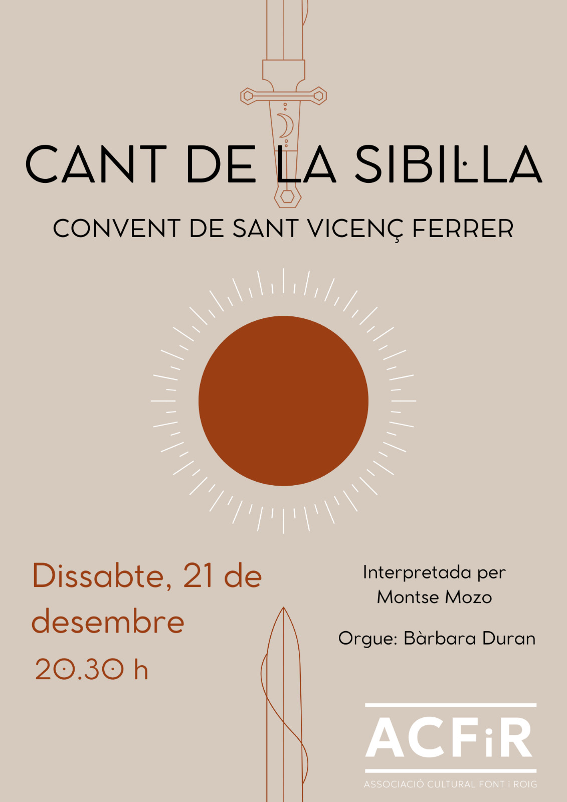 “L’any passat vàrem tenir l’element extra que ens donava la màgia de fer-ho a les dotze de la nit el dissabte de Nadal. Enguany per compensar el Convent estarà obert una estona abans i hi haurà una música ambiental que convida al ritual”. Montse Mozo és per segon any consecutiu la Sibil·la “alternativa” a l’església del Convent. Ho escrivim entre cometes perquè sí que en certa manera es tracta d’una “altra Sibil·la”. L’any passat, es va fer a l’hora màgica que esmentava la soprano murera ara establida a Manacor, però sense vinculació amb la litúrgia religiosa de les Matines, que ja fa anys que no se celebren al Convent. Enguany el cant de la Sibil·la pren l’alternativa el dissabte 21 de desembre a les 20:30 h.