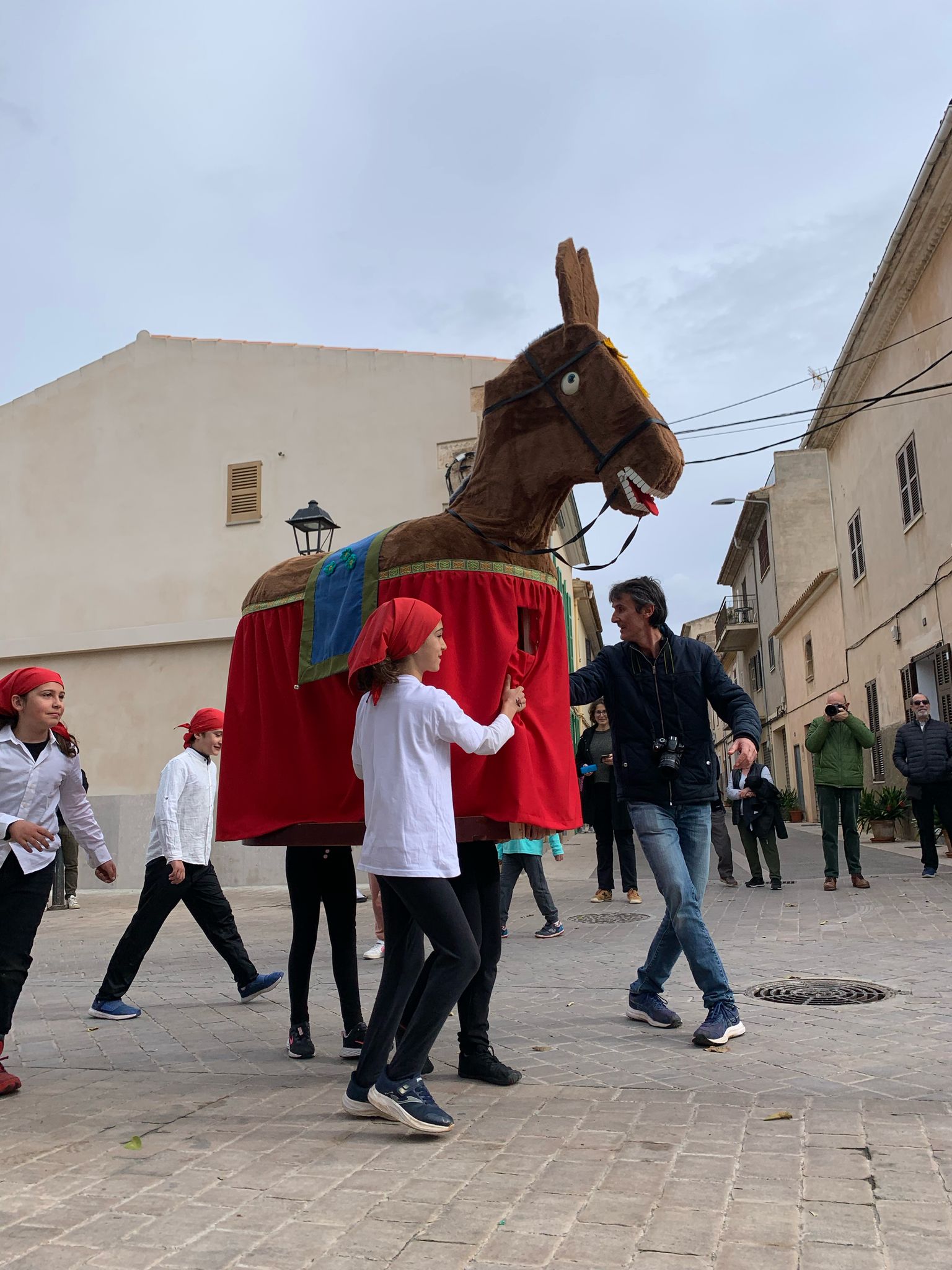 La idea va començar a gestar-se l’any passat. Un grup d’al·lots explicaven a ca seva que a l’escola preparaven una Mulassa, però aquella història va resultar més una fantasia de joc que no un fet real. Així que enguany aquella llavor sí que ha brostat. Un dia trobaren els baixos d’una camilla d’aquestes llargueres i que pareixia idònia per poder donar forma al nou animalet, que avui ha sortit ben xalest a celebrar amb tota la urgència del món els darrers dies abans de l’arribada de la recollida quaresma.