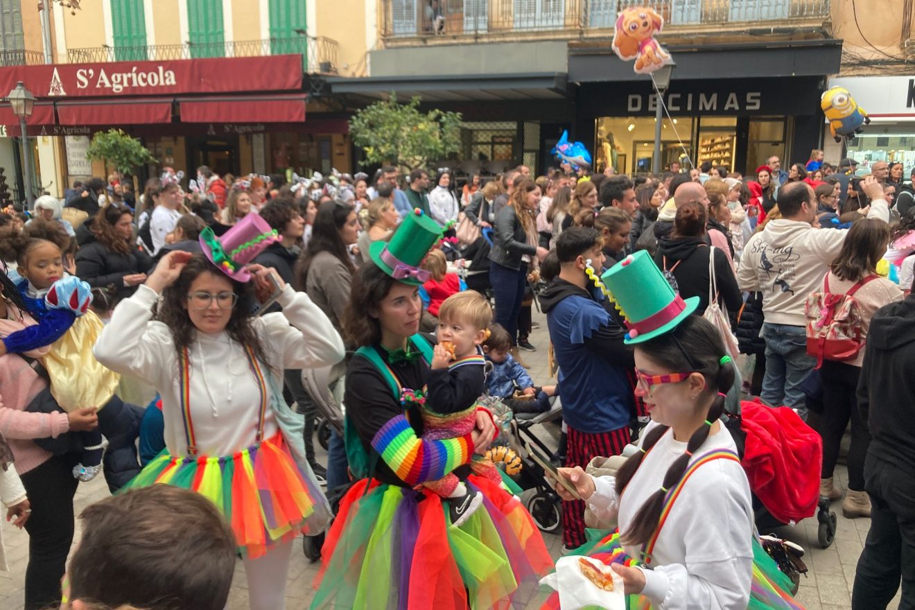 Centenars d’infants i joves s’aplegaren ahir a la plaça de sa Bassa per mostrar les seves fresses. Actuacions musicals, alegria i colors varen ser la tònica general, amb pinzellades d’altres infants que ploraven espantats per la bulla grossa de la festa del Dijous Llarder.