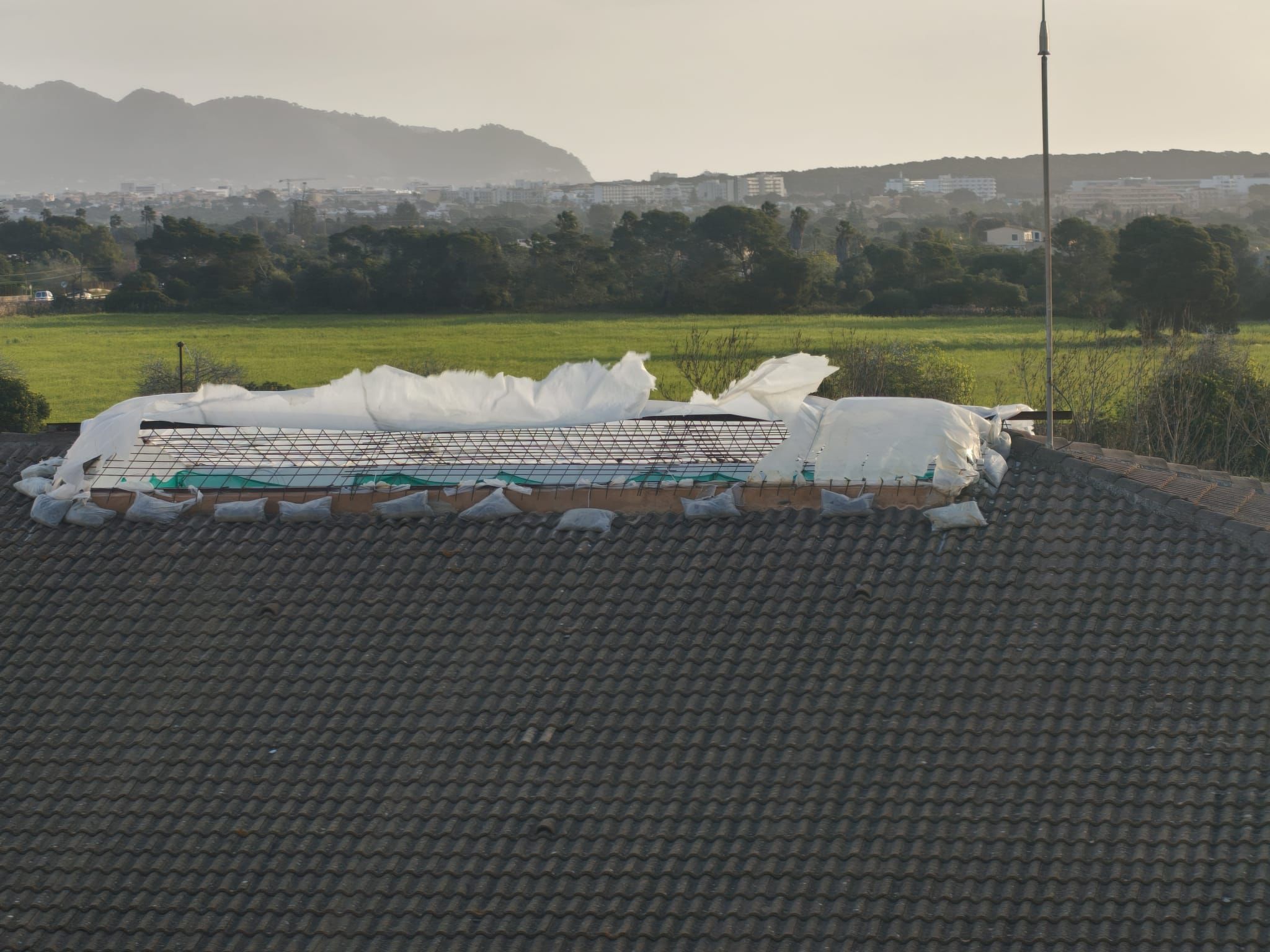 S’ha desprès la coberta provisional de plàstic que havia col·locat l’Ajuntament en substitució de la claraboia que va volar al col·legi Mitjà de Mar de l’IES Portocristo