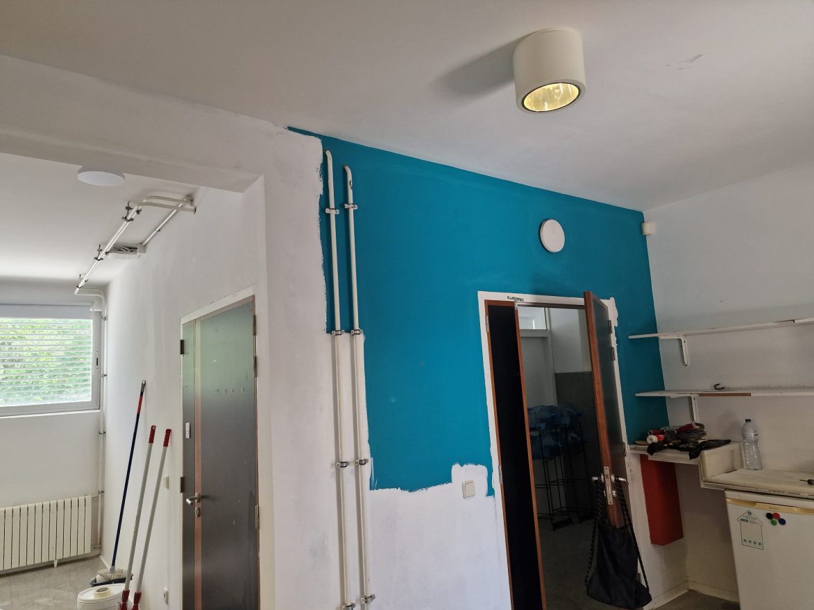 Molí d’en Xema: arreglar vidreres del gimnàs, netejar embornals, pintar tota la primera i segona planta, substitució per llums LED de hall i escales, pintar amb cauxo els patis interiors. Pintar passadissos i entrades ascensor.