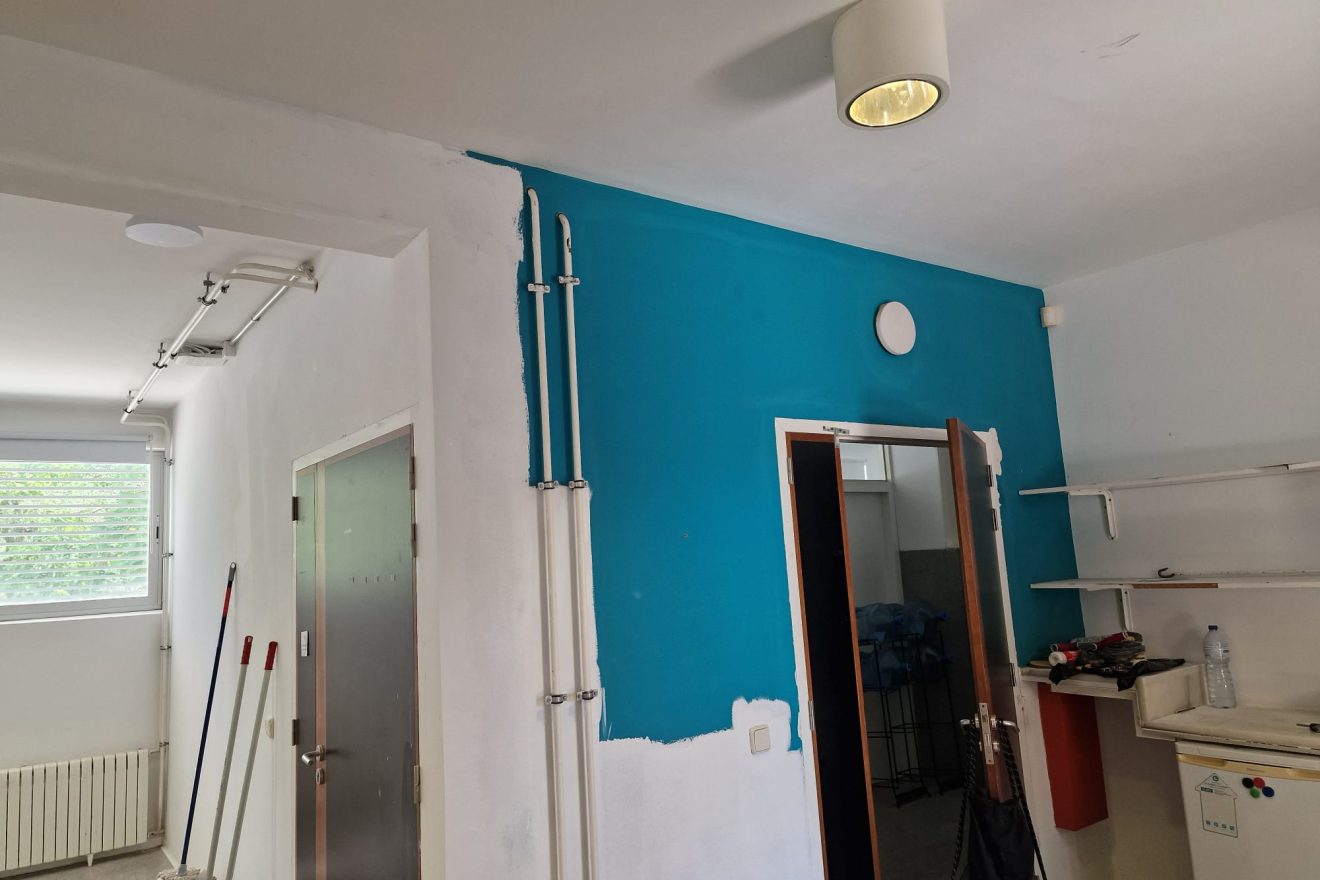 Molí d’en Xema: arreglar vidreres del gimnàs, netejar embornals, pintar tota la primera i segona planta, substitució per llums LED de hall i escales, pintar amb cauxo els patis interiors. Pintar passadissos i entrades ascensor.