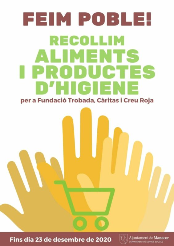 L’Ajuntament de Manacor, juntament amb la Fundació Trobada, Càritas i Creu Roja ha fet una crida aquest dimecres perquè totes aquelles persones que ho desitgin facin una donació per al recapte d’aliments i de productes sanitaris a benefici d’aquestes tres entitats socials. Es tracta d’una iniciativa conjunta amb els centres educatius del municipi de Manacor, que s’organitza cada any per Nadal. Així, a tots els centres educatius del municipi – públics, concertats i privats i de tots els nivells educatius – hi ha contenidors habilitats per rebre aquests productes fins dia 23 de desembre, el darrer dia lectiu abans de les festes. Cal destacar que tots els productes que es recaptin es repartiran entre la Fundació Trobada, Càritas Manacor i Creu Roja Manacor segons les seves necessitats. Es demana a les persones que vulguin fer una donació que, en cas de dur aliments, aquests no siguin frescs. Pel que fa als productes d’higiene, des de la Fundació Trobada han insistit en la necessitat de sabó, desodorant, pasta de dents, compreses higièniques, raspalls, etcètera.