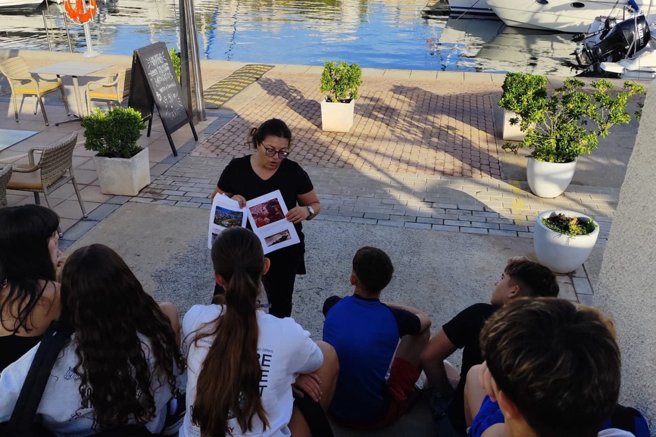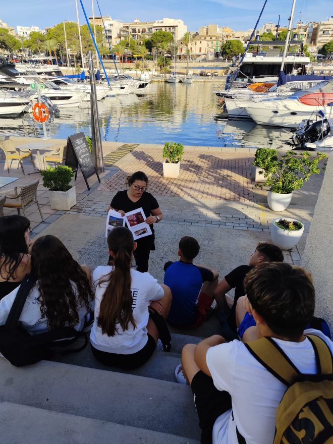 A partir de l’exposició fotogràfica que hi ha al moll, l’alumnat “ha hagut de fer diferents activitats i han pogut descobrir alguns dels personatges més famosos de la història de Portocristo, com és el Patró Pelat o en Joan Gomis; oficis com el de traginer i alguns d’ells que duien el peix a vendre a Manacor, en Camunyes, en Joan Serol o en Parra; els primers establiments turístics, etc.”, insisteix Barceló, que somriu en recalcar que “una de les coses que més els ha sorprès ha estat el fet que els homes i les dones no es poguessin banyar a la mateixa platja i que hi havia d’haver una distància entre uns i altres”. Els alumnes portenys també han descobert la història de l’avió que, a mitjan anys 70, va funcionar com a pub. En definitiva, “en aquesta part històrica i geogràfica de la sortida han descobert la importància que té un port a l’economia local”, diu Laura Moreno ben satisfeta.