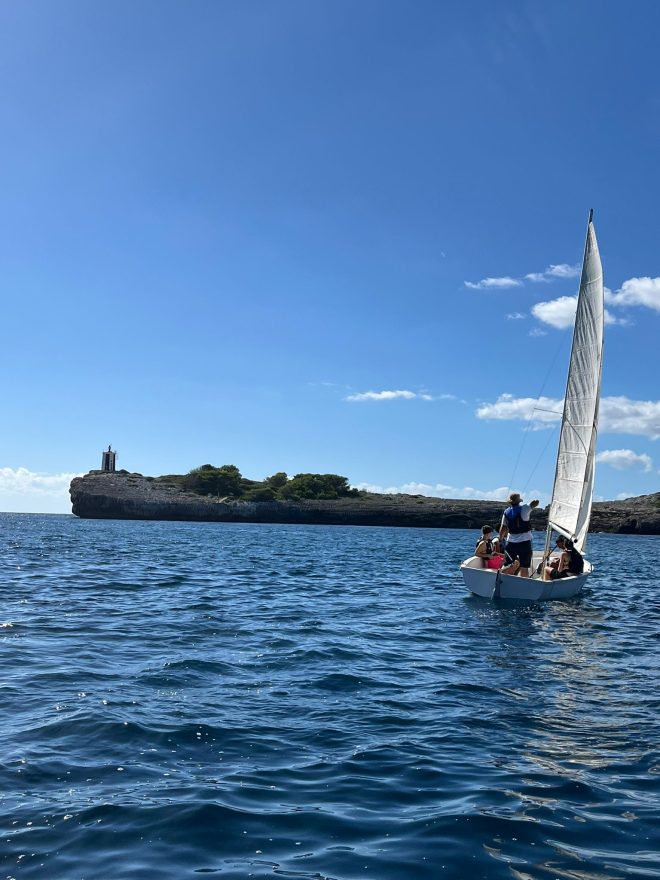 Després, els alumnes s’han embarcat en un vaixell de vela tipus ¨gamba¨ per fer l’activitat d’educació física. “Han recorregut el port i els voltants amb l’única energia que era la força del vent, com els primers romans que vengueren al nostre port, ara fa més de 2.000 anys”, remarca l’històric professor d’educació física del centre, Biel Mascaró.