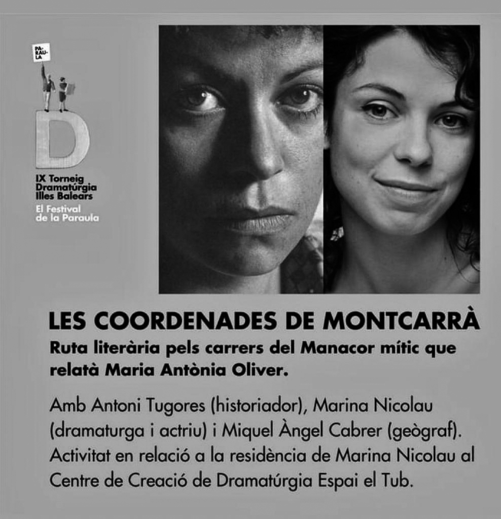 Les coordenades de Montcarrà tendran aquesta única funció, i a partir d’aquí Marina Nicolau continuarà amb el procés d’escriptura, per al qual compta amb una tutoria mensual per part de la dramaturga Anna Maria Ricart i el seguiment més quotidià i setmanal de la coordinadora de les residències, Catalina Florit. En el moment actual d’escriptura i creació, l’obra que escriu Marina Nicolau està preparada per a tres personatges, un dels quals seria un alter ego de Maria Antònia Oliver, ja que la dramaturga vilafranquera, a banda de ficcionar una mica el text, també hi ha incorporat elements del realisme màgic, “que és un estil d’escriptura que m’agrada moltíssim”.