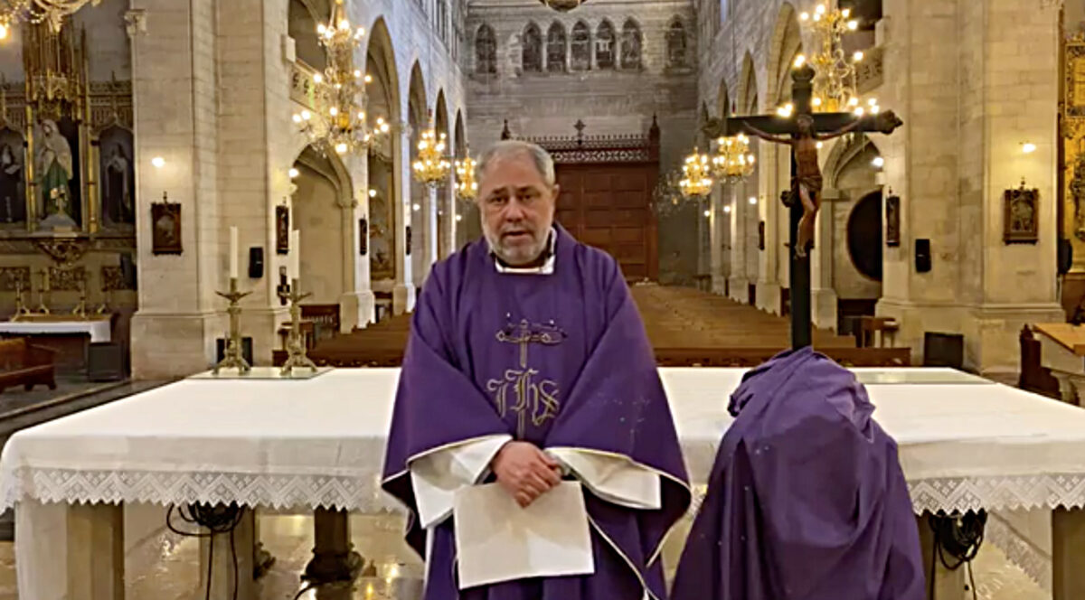 Quan es va decretar l’estat d’alarma, que va ser un dissabte vespre, no teníem ordres de suprimir les misses, i de fet, diumenge les fére totes, tot i que amb molt baixa afluència, perquè la gent ja estava advertida que no convenia sortir. I aquell vespre mateix ja va arribar l’ordre del bisbe que se suspenguessin les misses, però amb les esglésies obertes. Desinfectàvem l’arrambador per pujar aquell parell d’escalons i la porta d’entrada, però ja havíem aturat l’accés al Sant Crist i a altres coses de palpar.