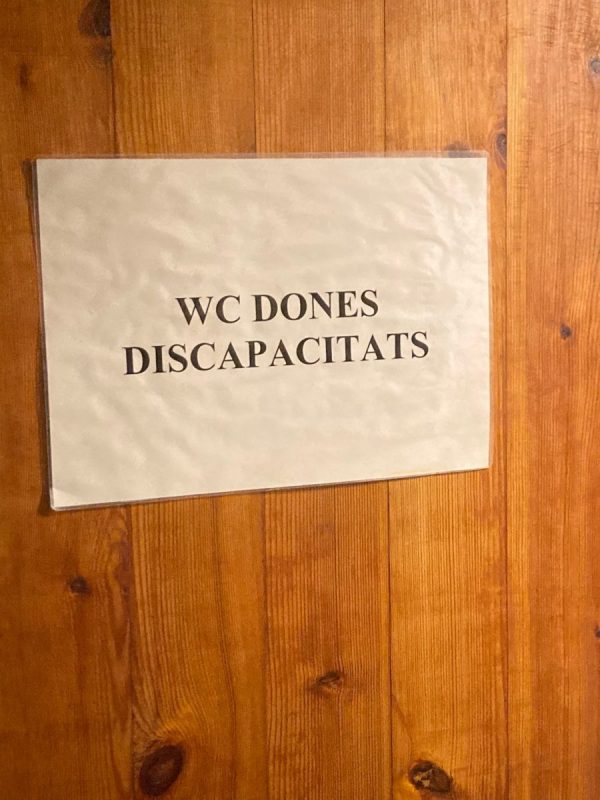 Ja es veu que a Manacor anam sempre dues passes endavant. Superada ja l’etapa del llenguatge no sexista, es veu que, com es mostra en la imatge que presideix aquest text, hem entrat ja en el format del llenguatge no binari. Com es veu, aquest excusat d’un popular molí manacorí està destinat a les dones discapacitats. No sabem si el del costat és per als homes discapacitades o si hi ha cap altra vel·leïtat que no controlem. Qui molt viurà moltes coses veurà.