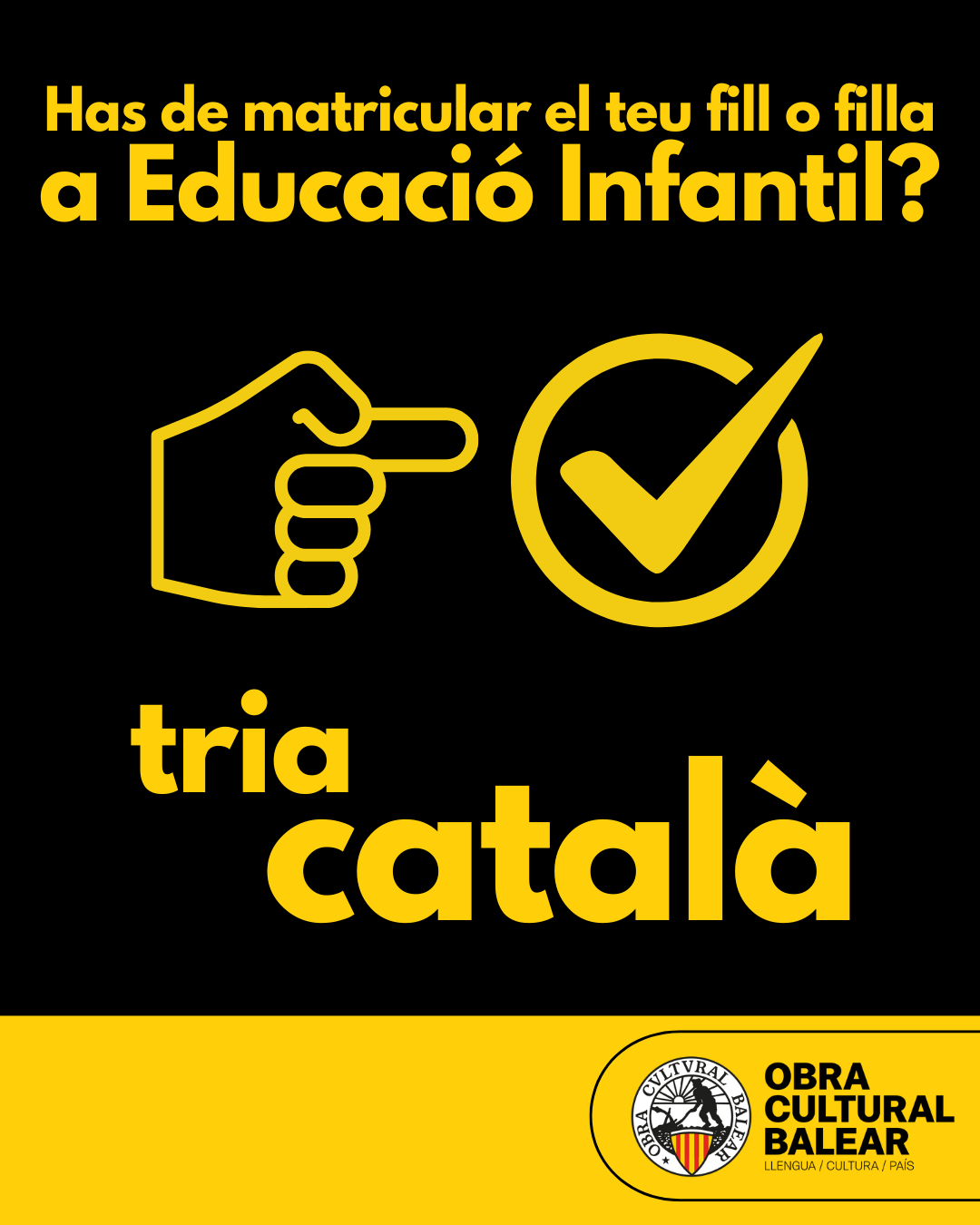 Amb l’inici imminent del procés de matriculació per al curs 2025-2026, l’Obra Cultural Balear (OCB) ha posat en marxa una nova campanya informativa adreçada a les famílies i els equips directius dels centres educatius per recordar la importància del model lingüístic que es tria durant l’etapa educativa i sensibilitzar les famílies perquè optin per la llengua catalana.