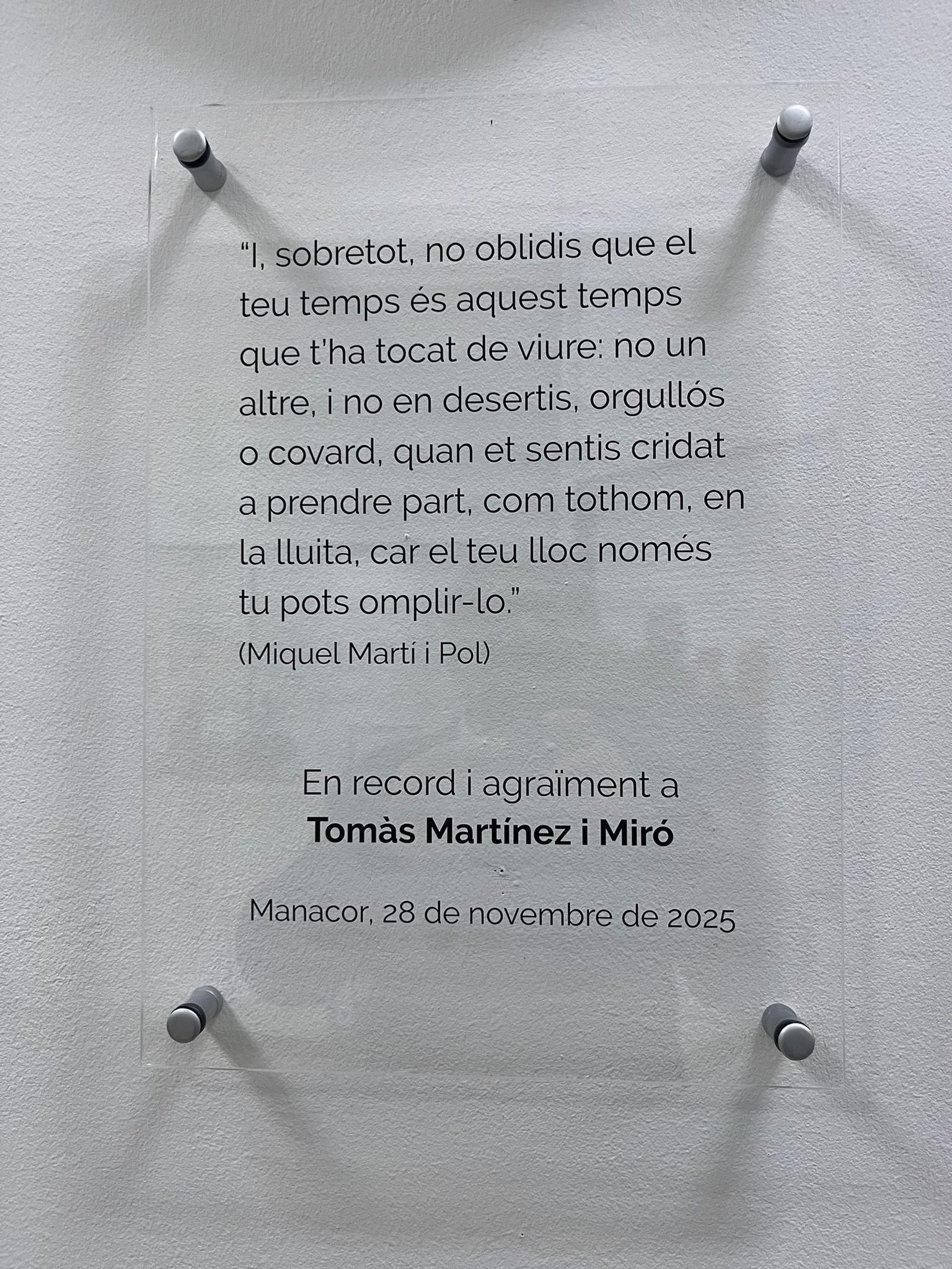 La trobada es va cloure amb el descobriment d’una placa al local de Manacor dedicada a Tomàs Martínez, en record i agraïment a tants anys de feina i lluites compartides.