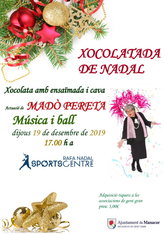 Si més no és espectacular. Hom es pensava que amb el govern roig algunes coses canviarien a Manacor. I sí que n’han canviades! Enguany, per exemple, la gent gran de Manacor, per gentilesa de l’Ajuntament de la vila, podrà gaudir d’una xocolotada de nadal amb ensaïmada i cava. La cosa, dita així, i a preus populars (tres eurets) sona populista i una micoia estantissa. Però alerta. D’estrella convidada, com ja ha pogut captar l’amable lector, hi ha l’entranyable i sempre efectiva i rendible Madò Pereta. I com a espai, no hi havia, de ben segur, cap altra opció millor que l’internacionalíssim Rafa Nadal Sports Centre. Ens pensàvem que no eren amics, el clan Nadal i el nou equip de govern… però ja se sap que les festes de Nadal entendreixen el cor de qualsevol…