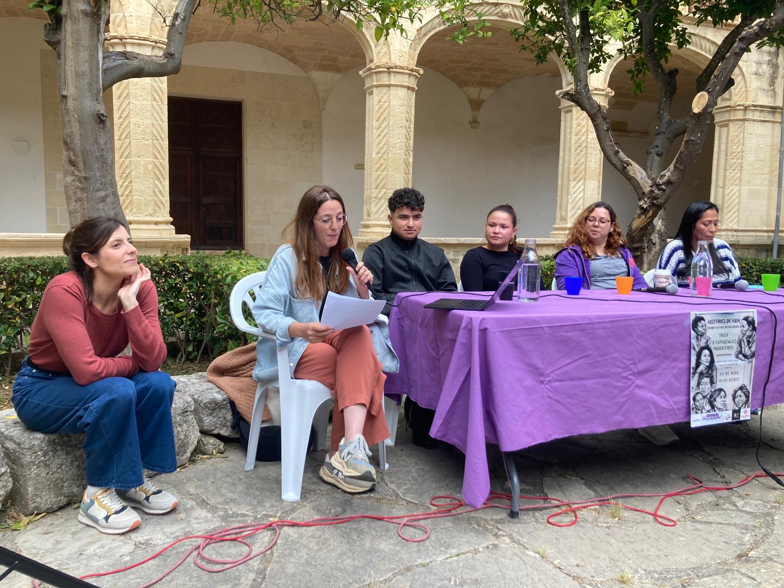 Chaima, també d’entre el públic, tengué paraules de reivindicació per a la infància migrant: “ A les escoles, els alumnes que acaben d’arribar també ho passen malament. Molts de nins arriben i no saben ni castellà ni català, i a les escoles falta una figura per ajudar aquests nins, i com que no hi és, és un paper que hem d’assumir nosaltres, quan això no és responsabilitat nostra”.
