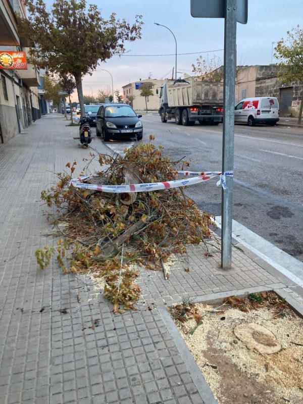El Departament de Medi Ambient de l’Ajuntament de Manacor ha detectat el mal estat de la fusta en alguns arbres del municipi. És el cas d’aquest que estava situat a la ronda de Felanitx, i que ha hagut de ser talat, juntament amb un altre de ben a prop, per evitar caigudes sobrevingudes. És de suposar que ben aviat hi reposaran un substitut.