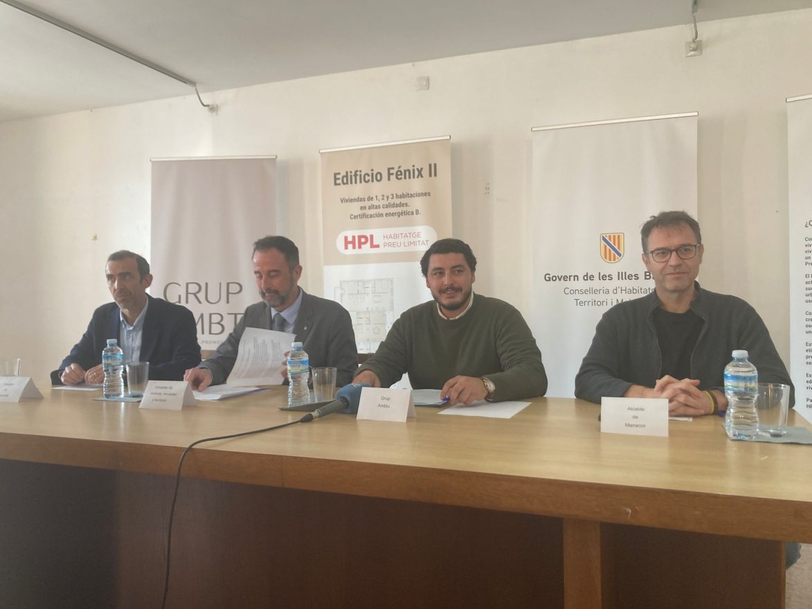 Germán Rocha ha presentat aquestes dues promocions adreçades a “joves treballadors, famílies, persones majors” que no poden assumir els preus d’habitatge actuals, inflats pel lloguer turístic i també pel mercat de compra-venda, la pressió turística i l’especulació”, que fan, ha dit, “que la vida sigui més difícil aquí”. Rocha ha aprofitat per dir que com a promotora “volem generar ingressos, però també volem aportar solucions” i tot seguit ha lliurat al conseller Mateo una carpeta amb projectes semblants als dos que s’han presentat avui i que permetrien la reconversió de 198 edificis a les Illes Balears i la generació de 900 nous habitatges de preu limitat i sense consum de territori. De fet, només a Manacor el grup Ambtú té en cartera 35 habitatges més, que s’haurien de sumar als 84 que ja hi ha projectats per altres promotores. D’aquests 84, 44 corresponen a edificis inacabats, 11 a un antic establiment turístic a Portocristo que serà reconvertit també en habitatges, i un altre a partir de la divisió d’un habitatge ja existent.