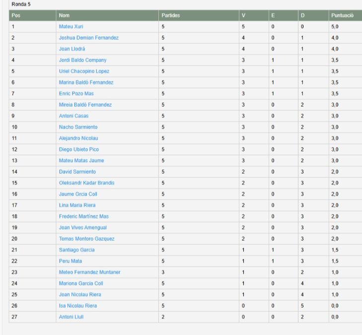La segona posició va ser per a Joshua Demian Fernández, que només cedí en partida de Scrabble davant Antoni Casas, mentre que el tercer caixó del podi l’ocupava el manacorí Joan Llodrà, que precisament només cedí una partida d’escacs davant el campió Xurí.
