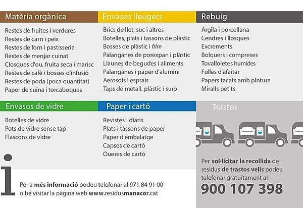 A més de les deixalleries municipals, l’Ajuntament posa en marxa un sistema de deixalleria mòbil. Es tracta d’una furgoneta que es mourà per tot el municipi i on la ciutadania podrà dur residus que solen acabar dins de la fracció de rebuig però que necessiten un tractament especial com per exemple l’oli de cuinar, les bombetes o els petits aparells electrònics i electrodomèstics. La setmana vinent el departament de Medi Ambient explicarà en detall els horaris i els punts on es podrà trobar aquesta deixalleria mòbil. Aquí podeu veure els residus que es poden deixar a les deixalleries: