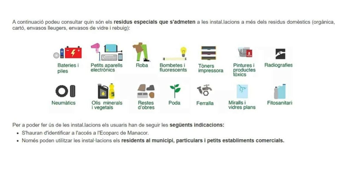 A més de les deixalleries municipals, l’Ajuntament posa en marxa un sistema de deixalleria mòbil. Es tracta d’una furgoneta que es mourà per tot el municipi i on la ciutadania podrà dur residus que solen acabar dins de la fracció de rebuig però que necessiten un tractament especial com per exemple l’oli de cuinar, les bombetes o els petits aparells electrònics i electrodomèstics. La setmana vinent el departament de Medi Ambient explicarà en detall els horaris i els punts on es podrà trobar aquesta deixalleria mòbil. Aquí podeu veure els residus que es poden deixar a les deixalleries: