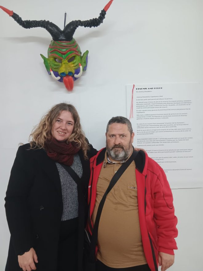 Amb “Dimonis amb color” l’artista ens sorprèn amb un recull de caretes de dimonis nascudes des de la passió i l ‘estima per les festes de Sant Antoni on queden reflectides les seves dots artístiques. Ell mateix, ho expressa, amb veu tímida: “Sent molt d’orgull. El que m’inspira és la satisfacció que sent quan veig el resultat final i el saber que altre gent podrà gaudir i admirar el meu art”.