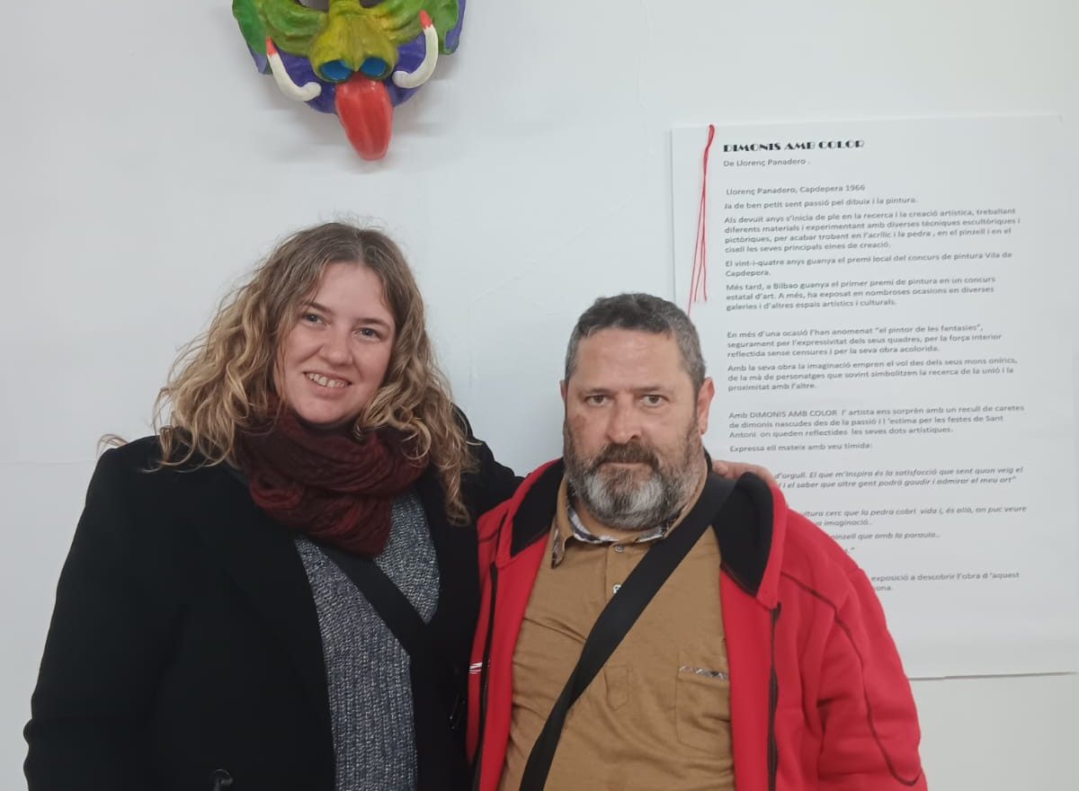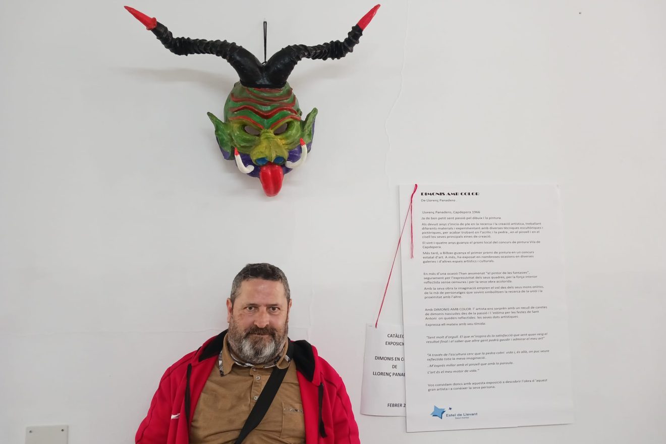 Amb “Dimonis amb color” l’artista ens sorprèn amb un recull de caretes de dimonis nascudes des de la passió i l ‘estima per les festes de Sant Antoni on queden reflectides les seves dots artístiques. Ell mateix, ho expressa, amb veu tímida: “Sent molt d’orgull. El que m’inspira és la satisfacció que sent quan veig el resultat final i el saber que altre gent podrà gaudir i admirar el meu art”.