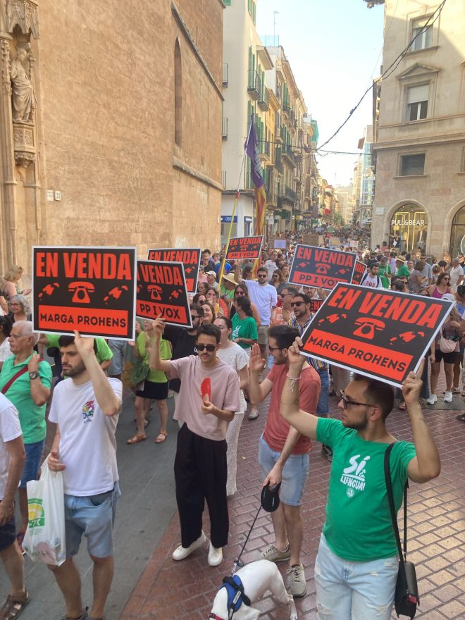 Referències immobiliàries, lemes per la llengua i la cultura pròpies de Mallorca, queixes per la saturació turística i per les dificultats per trobar un habitatge per part dels joves, moltes pancartes elaborades de forma manual, amb cartons. Molta imaginació i, sobretot, molta preocupació, això mostraven els assistents a la manifestació, a la qual s’hi havien adherit més de cent entitats.