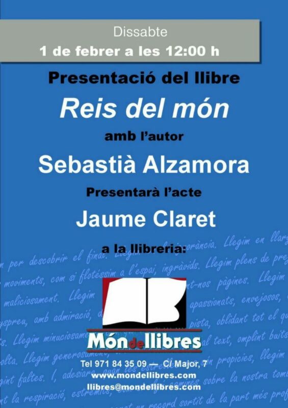 Ja he presentat la novel·la a Barcelona i també a Palma. Aquest dissabte seré a Manacor, a les 12 h a Món de Llibres i dia 12 hi haurà una altra presentació a Palma. Després n’hi ha unes quantes més que encara estam pendents de fixar la data: a Mataró i també a Inca, Santa Margalida i a Llucmajor.