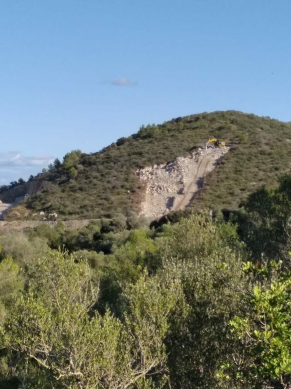 Muntanya o caramull de grava? La imatge pertany al puig d’en Mora, que podem colombrar sense dificultat ben davant el Parc de l’Auba, a prop de l’ermita de Santa Llúcia. Vist d’enfora sembla que si hi obrissin un camí per pujar a una nova ermita, o tal vegada una pista d’esquí, ara que el temps refresca i neva cada cap de setmana. Però no. Aquest puig, que fins ara no estava tocat de mans, es veu que esdevindrà, d’aquí a molt poc temps, un caramull de grava, una fàbrica de pedretes petites perquè picapedrers, manobres i altres professionals puguin fer la seva feina. Essent com és tan a prop de la zona de pedreres fins ara explotades, tot fa pensar que es tracta d’una explotació legal i amb tots els permisos. Una demostració més que la legalitat no és germana de la legitimitat, i que els permisos no s’avenen per a res amb l’ànsia de preservar els pocs redols encara verges que ens resten dins el municipi. Caldrà seguir de prop l’explotació i investigar per què comença ara i en quines condicions.