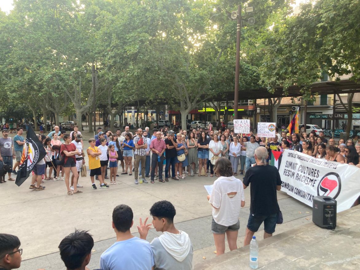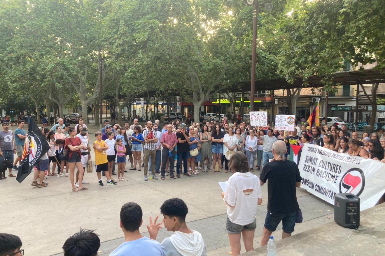 Prop de 200 persones s’han ajuntat avui a la plaça de Ramon Llull per manifestar el seu rebuig davant els actes racistes i violents que varen tenir lloc la setmana passada a la locallitat murciana de Torre Pacheco.