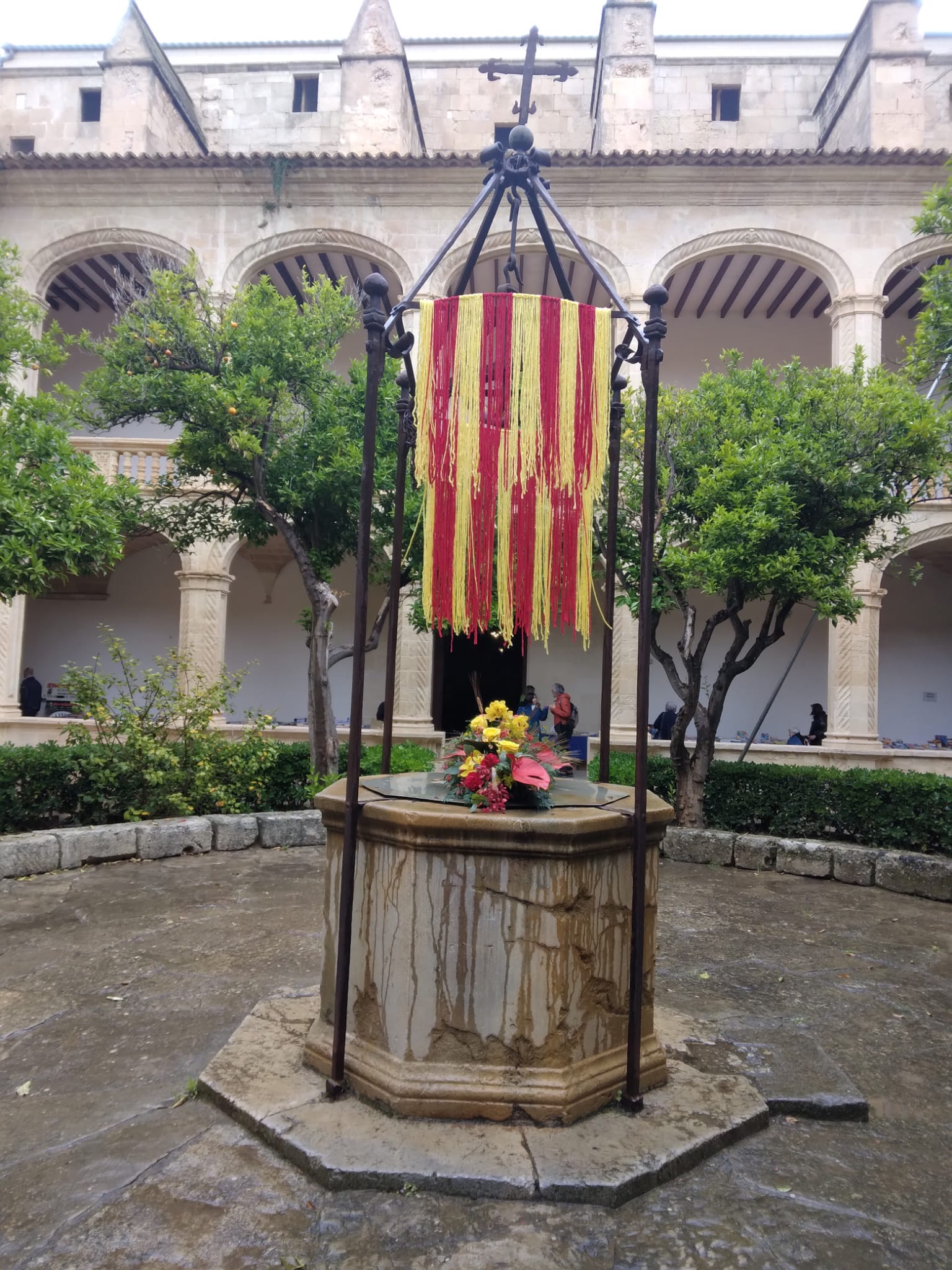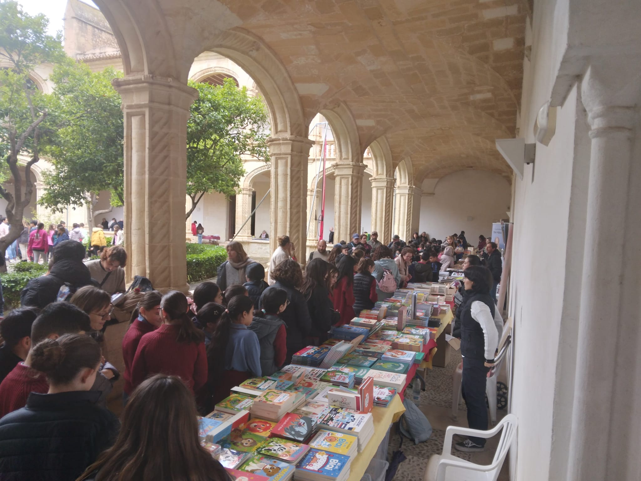 Enguany tothom mirava el cel. Després de setmanes de temps gairebé estiuenc, arriba el Sant Jordi més hivernal. La jornada començava amb paraigües, però el paper ho aguanta tot i les llibreteres i llibreters també! El balanç, ens expliquen Fausto Puerto, de la llibreria Món de Llibres, i Marta Jové, de La il·lustrada, és molt positiu. Fausto assegura que “el matí va ser més fluix, per mor de la pluja, però el capvespre, de les cinc a les vuit, va ser boníssim i molt intens. Supòs que es va ajuntar la gent que feia comptes venir en aquesta hora amb la que no havia vengut el matí”.El cas és que el Claustre de Sant Vicenç Ferrer feia goig. Les galeries foren plenes tot el dia de llibres i roses, amb les paradetes de les llibreries i de diferents entitats de la vila. Una teringa constant de visitants pogué anar gaudint també de les càpsules de circ que s’instal·laren al centre del pati del claustre fins ben entrat el migdia. Ja el capvespre, petits i grans pogueren participar en la marató de contes, que s’hagué d’adaptar al canvi d’espais a causa de la pluja. Tot i que la Ludoteca de Lila s’hagué d’anul·lar, Libèl·lula i Nassos i més s’adaptaren als nous espais del convent i la biblioteca, per contribuir a aquesta festa de la cultura. La resta de la programació pogué tirar endavant com estava previst.
