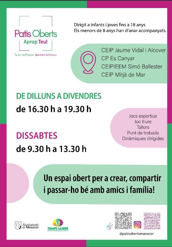 Amb gran pompa s’ha presentat una nova temporada de patis oberts a les escoles, que han encetat el curs amb prou èxit de participació. Als cartells de promoció, davall el títol transparent de “Patis oberts” hi podem veure una expressió que vol mostrar la proximitat de la iniciativa amb la ciutadania i amb els infants i joves. Hi diu “Aprop teu”. Ja sabem que una coneguda associació portenya es va posar aquest nom “Aprop” escrit així junt. Potser s’agafaren una llicència poètica, com la mateixa d’escriure Portocristo separat.