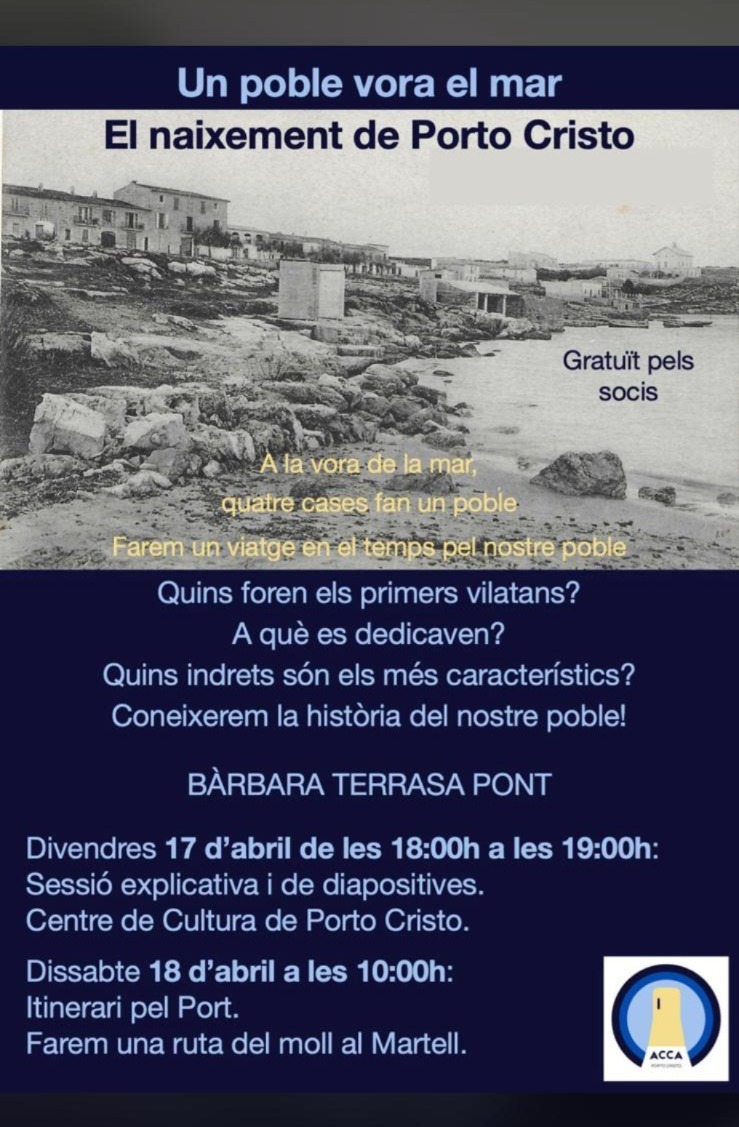 Avui a les 18h hores, al Centre de Cultura de Portocristo, Terrasa farà una conferència per mirar de donar resposta a aquestes i altres qüestions sobre la història de la localitat portenya. Demà dissabte, a les 10h començarà una ruta del moll fins al martell per conèixer els indrets més característics de Portocristo relacionats amb la seva història més antiga.