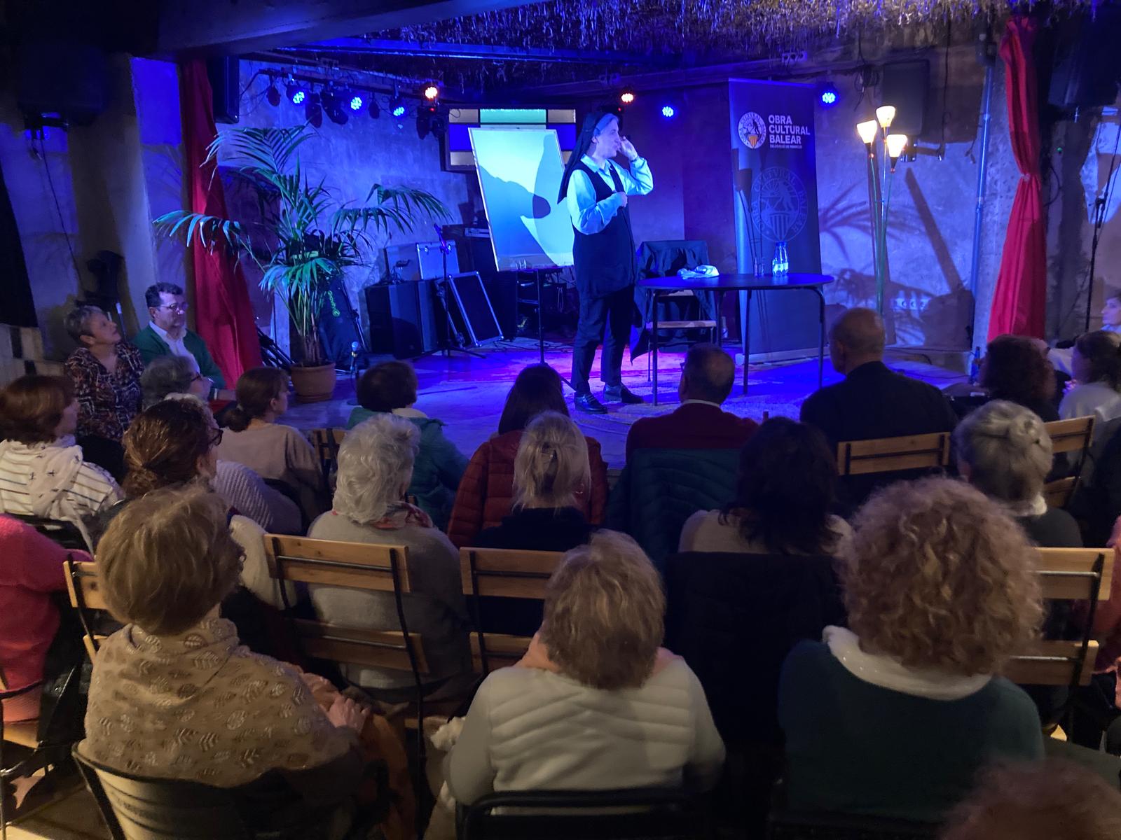 Forcades, convidada per la delegació de l’Obra Cultural Balear, va parlar a Can Lliro davant un auditori que superava les cent cinquanta persones. La monja barcelonina va explicar primer de tot, però, quins han estat els canvis que s’han produït a l’església catòlica els darrers anys sota el pontificat del papa Francesc en relació a la presència de dones als llocs de comandament al Vaticà. Forcades ha explicat que l’any 2022 el papa Bergoglio va obrir la possibilitat que persones que no fossin bisbes ni cardenals ni estiguessin ordenades com a sacerdots poguessin accedir als càrrecs ministerials del Vaticà. “Una cosa és la possibilitat, i l’altra és la realitat”, advertí Forcades, per puntualitzar immediatament que “per primera vegada ara això ja passa. Simona Branvilla, monja, infermera i doctora en psicologia, ha estat nomenada prefecte, el càrrec més alt, en un dels dicasteris”.